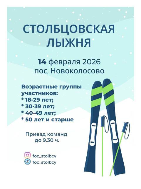 Время не ждет: предварительные заявки принимаются до 12 февраля включительно. Успейте отправить анкету на электронный адрес foc.stolbcy@mail.ru — и ваше имя уже в списках участников «Столбцовской лыжни»!