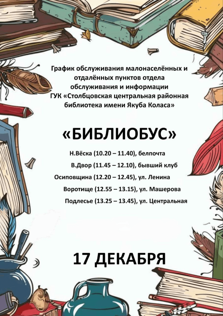 17 декабря библиобус отправится в малонаселенные и отдаленные пункты Столбцовского района