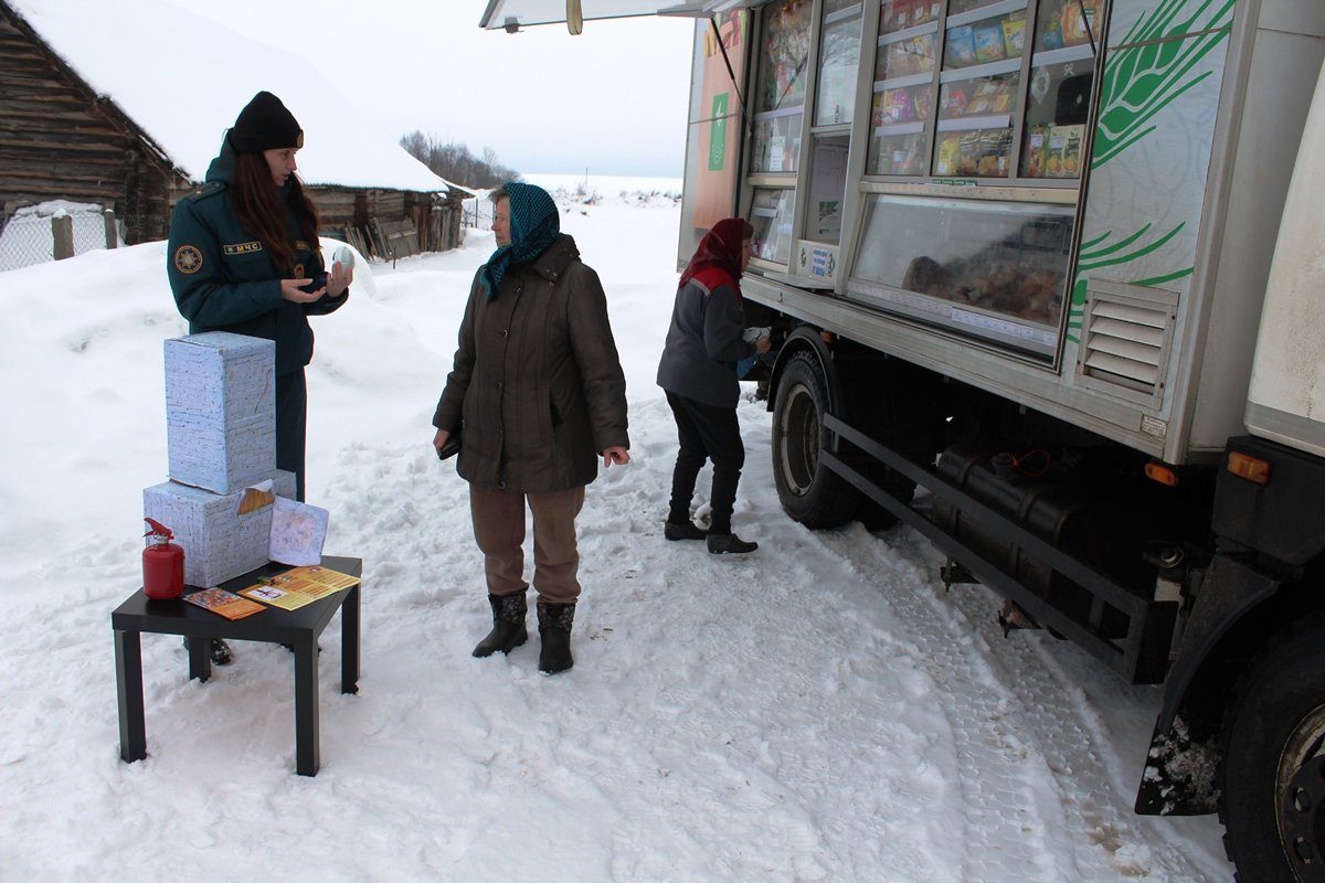 Макет небезопасной печки, автономный пожарный извещатель, огнетушитель, телефонные номера экстренных служб – все эти атрибуты помогли сделать встречи у автолавок в каждом населённом пункте интересными и содержательными.
