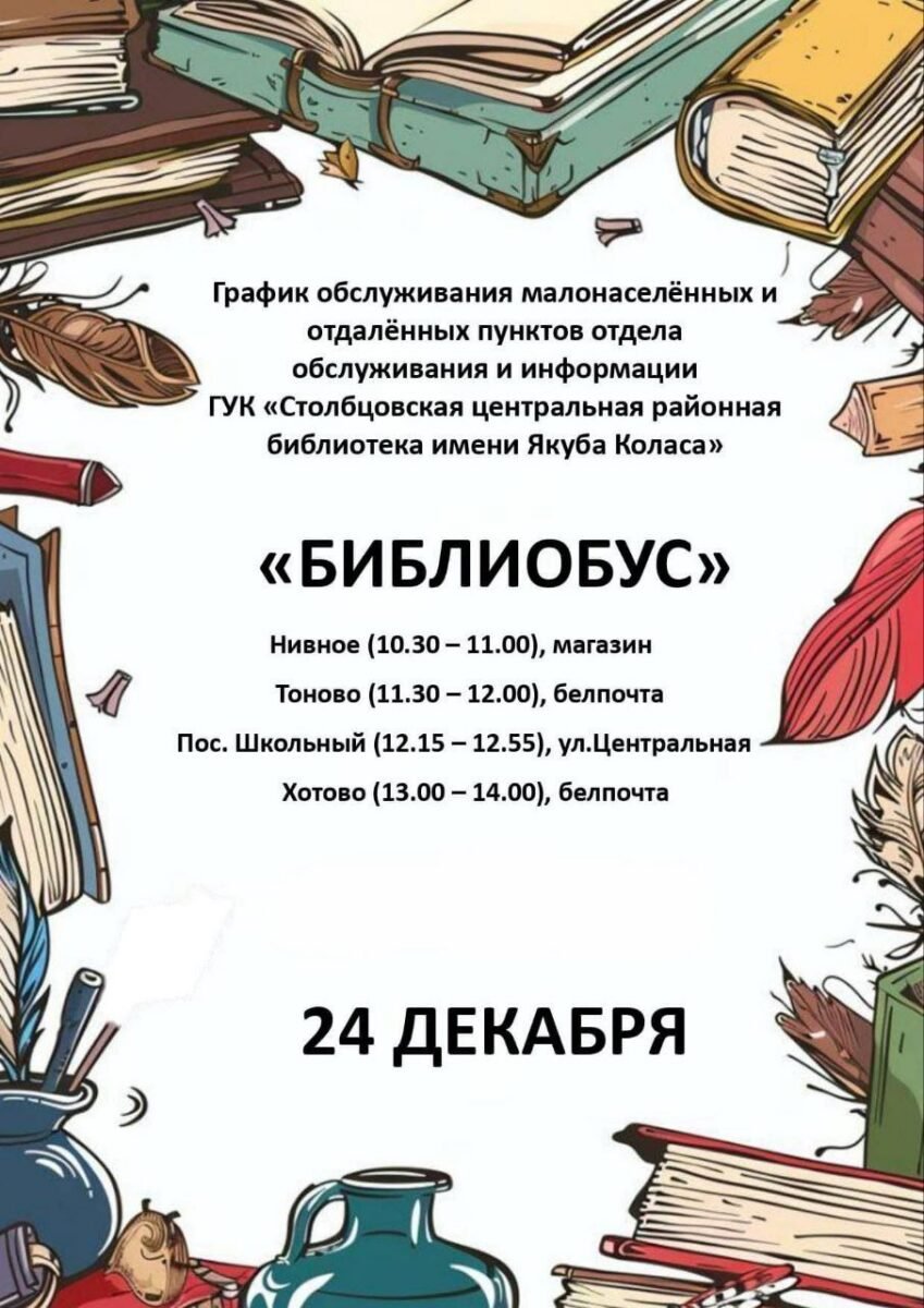 24 декабря библиобус отправится в малонаселенные и отдаленные пункты Столбцовского района