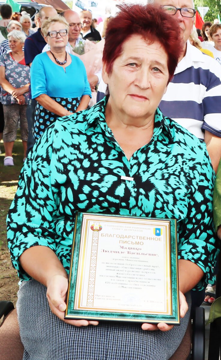 В этом году во время празднования 470-летия деревни Миколаевщина Людмиле Малявко вручили благодарственное письмо районного Совета депутатов.