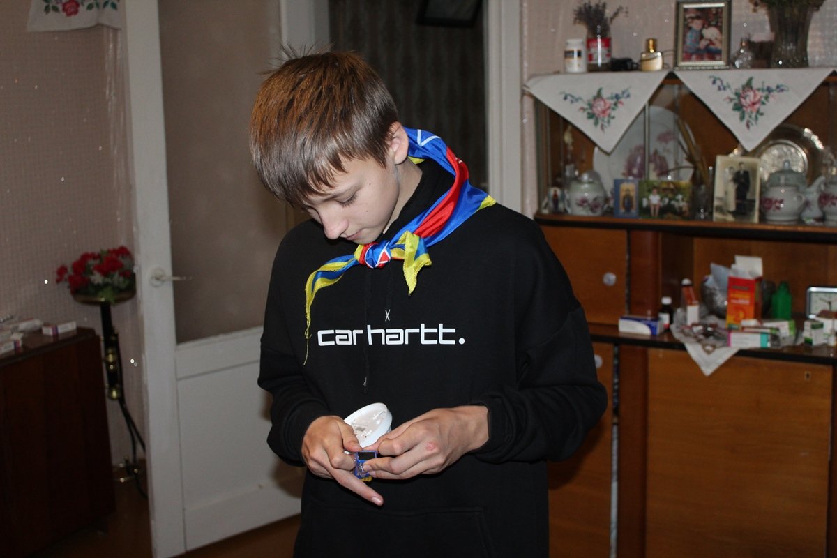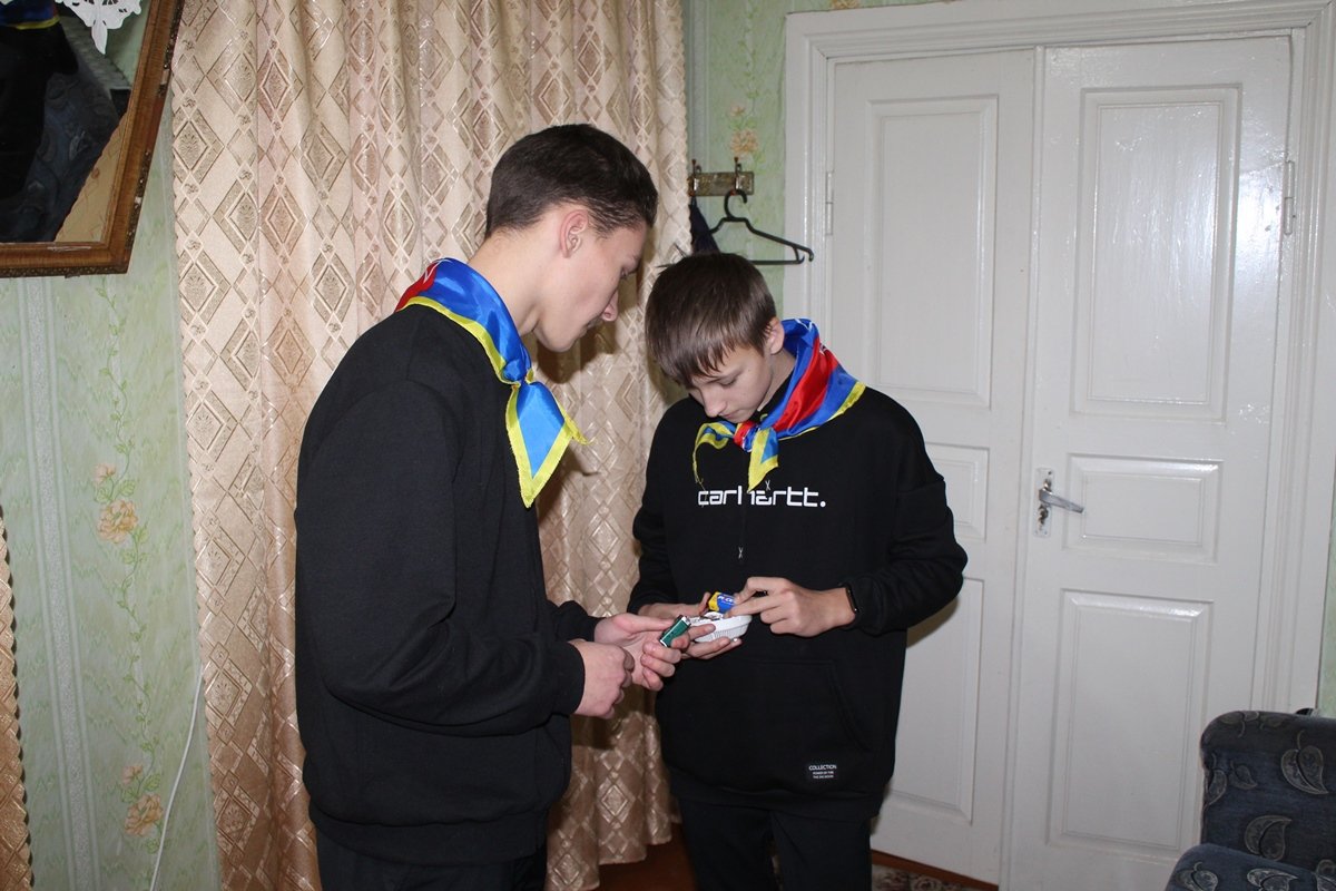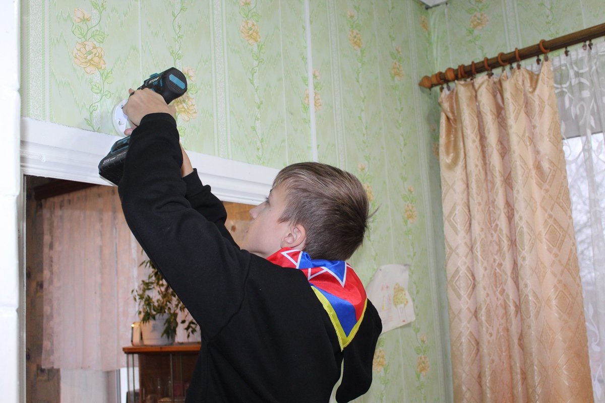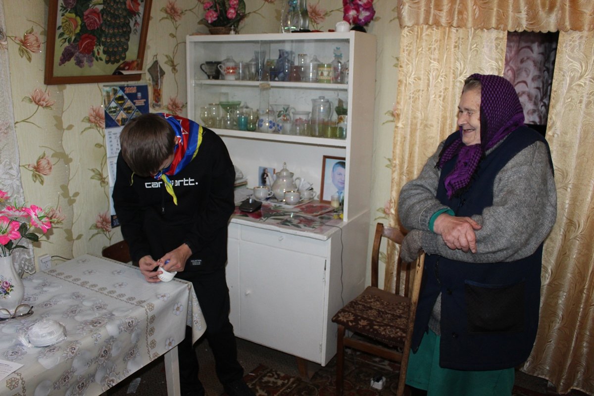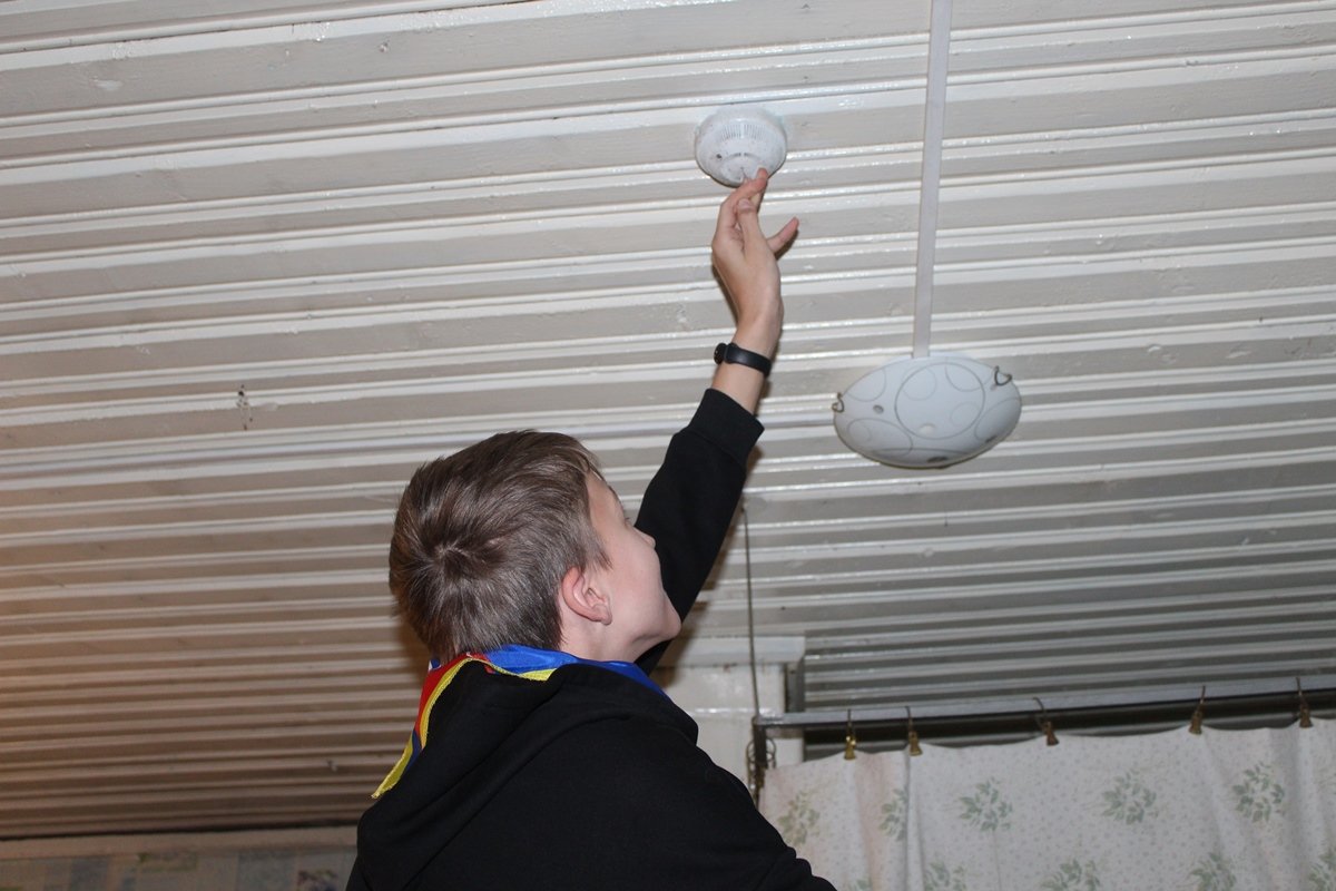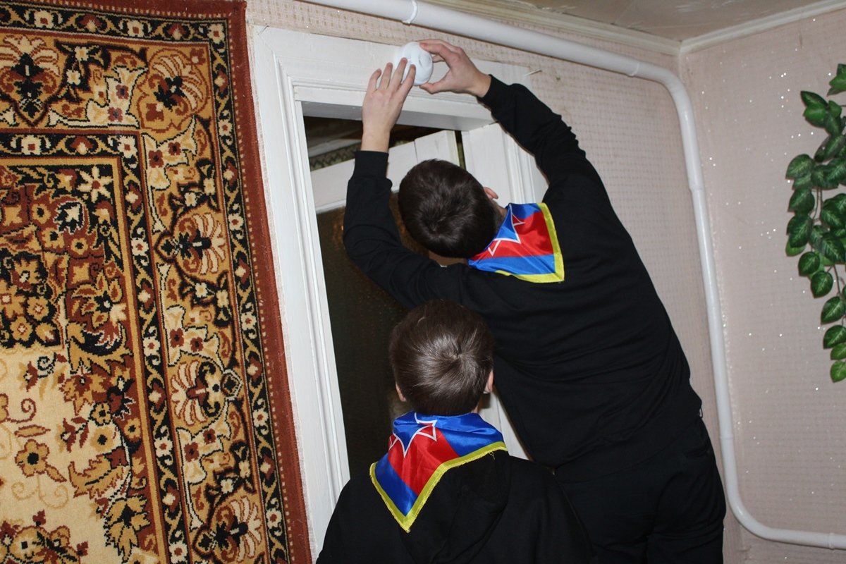 Юные спасатели сразу же проверяют работоспособность приборов: батарейка в одном из них не работает. Ребята меняют батарейку, возвращают извещатель на его «рабочее место», напоминают женщине о необходимости периодически проверять исправность прибора, вручают улыбчивой хозяйке наглядную тематическую продукцию… и мы отправляемся дальше.