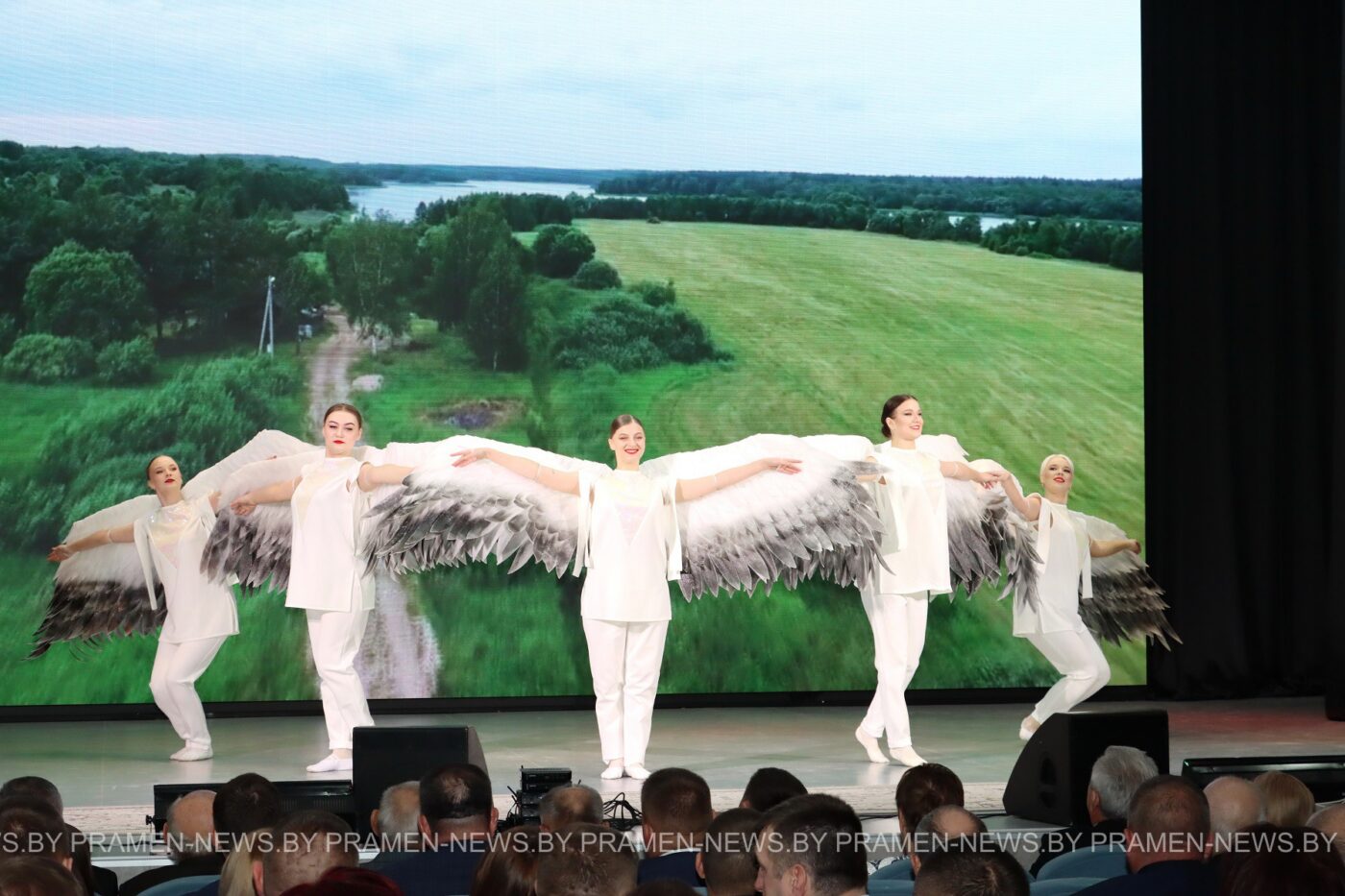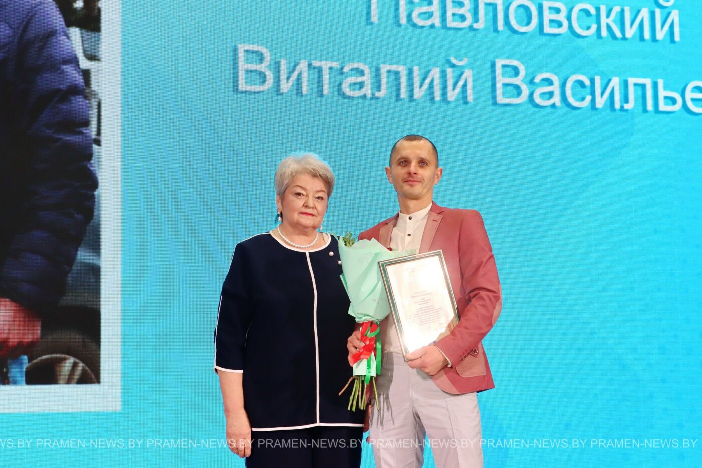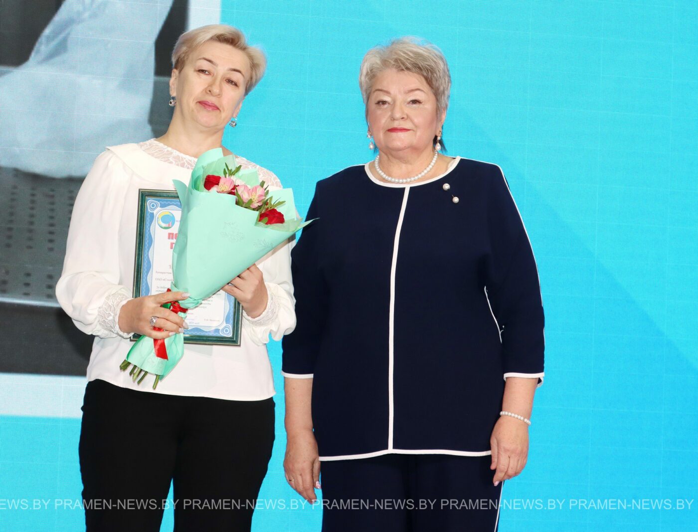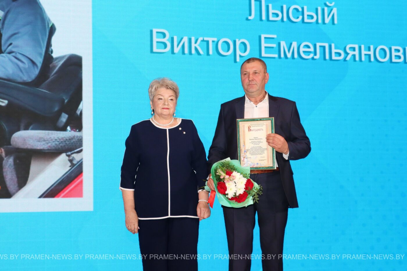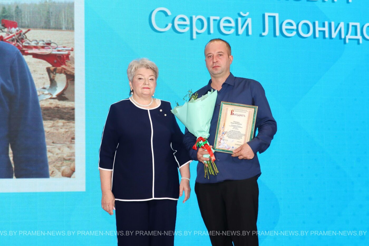 Председатель Столбцовской районной профсоюзной организации Белорусского профсоюза работников агропромышленного комплекса Тамара Колошич присоединилась к поздравлениям и вручила награды труженикам агропромышленного комплекса.