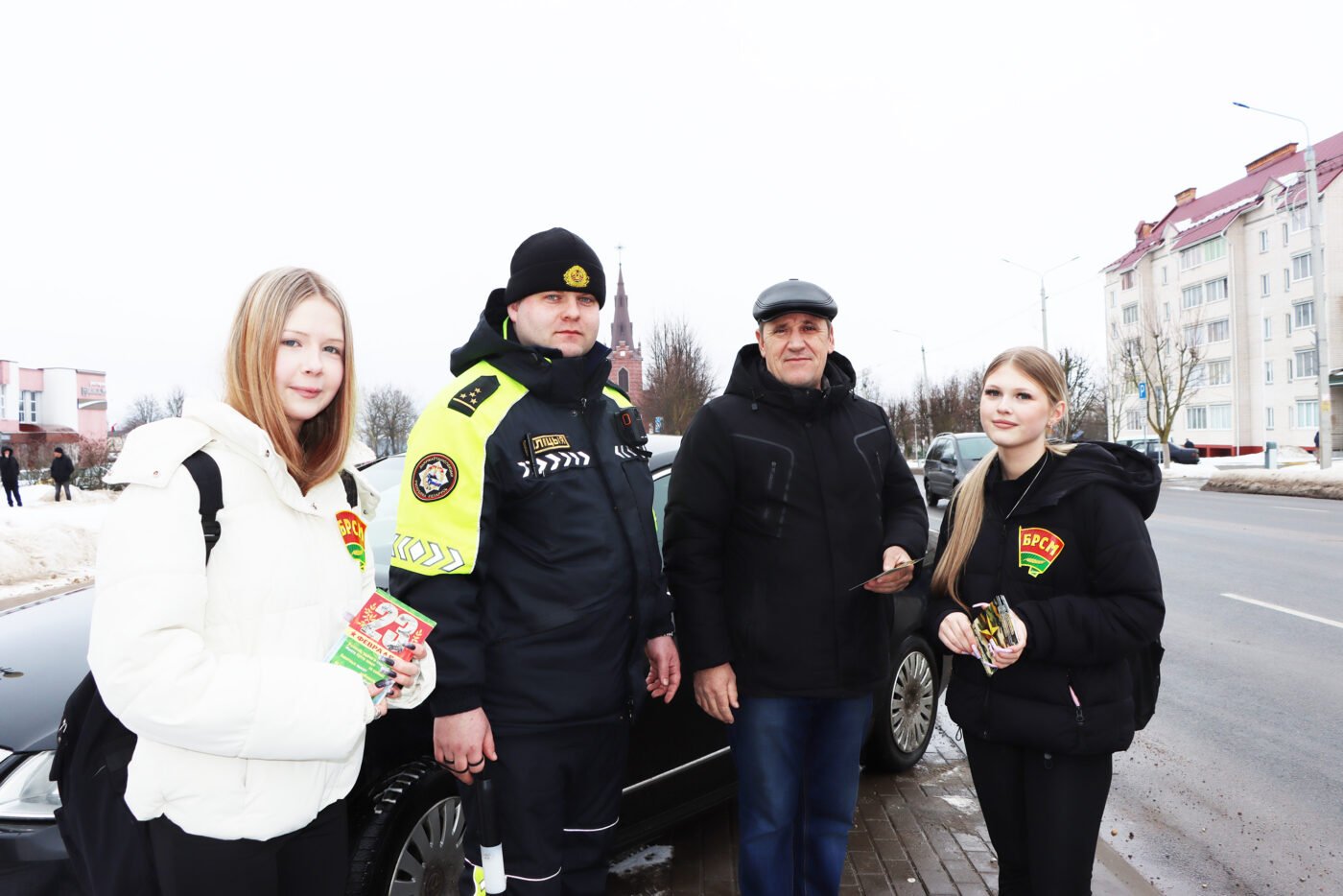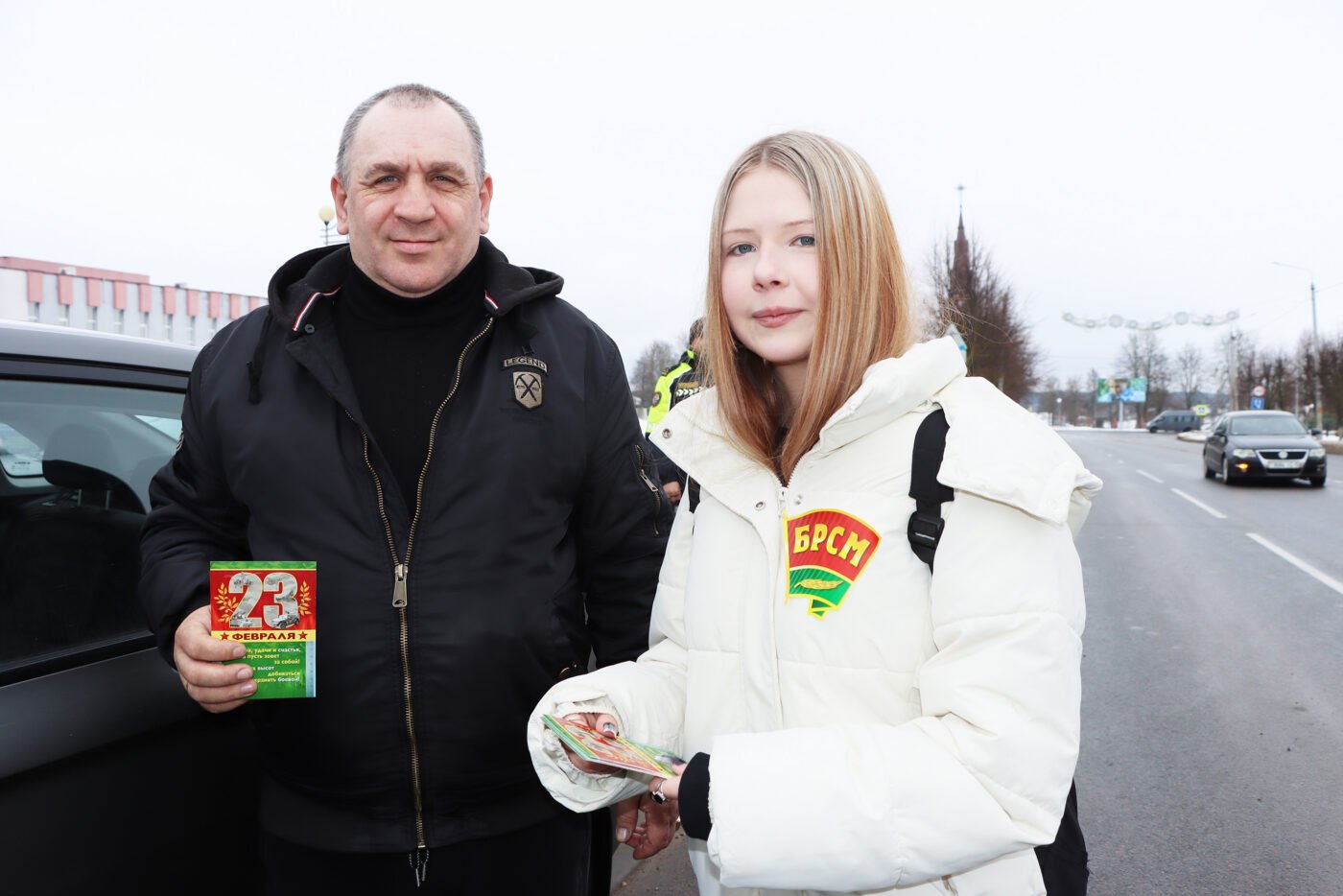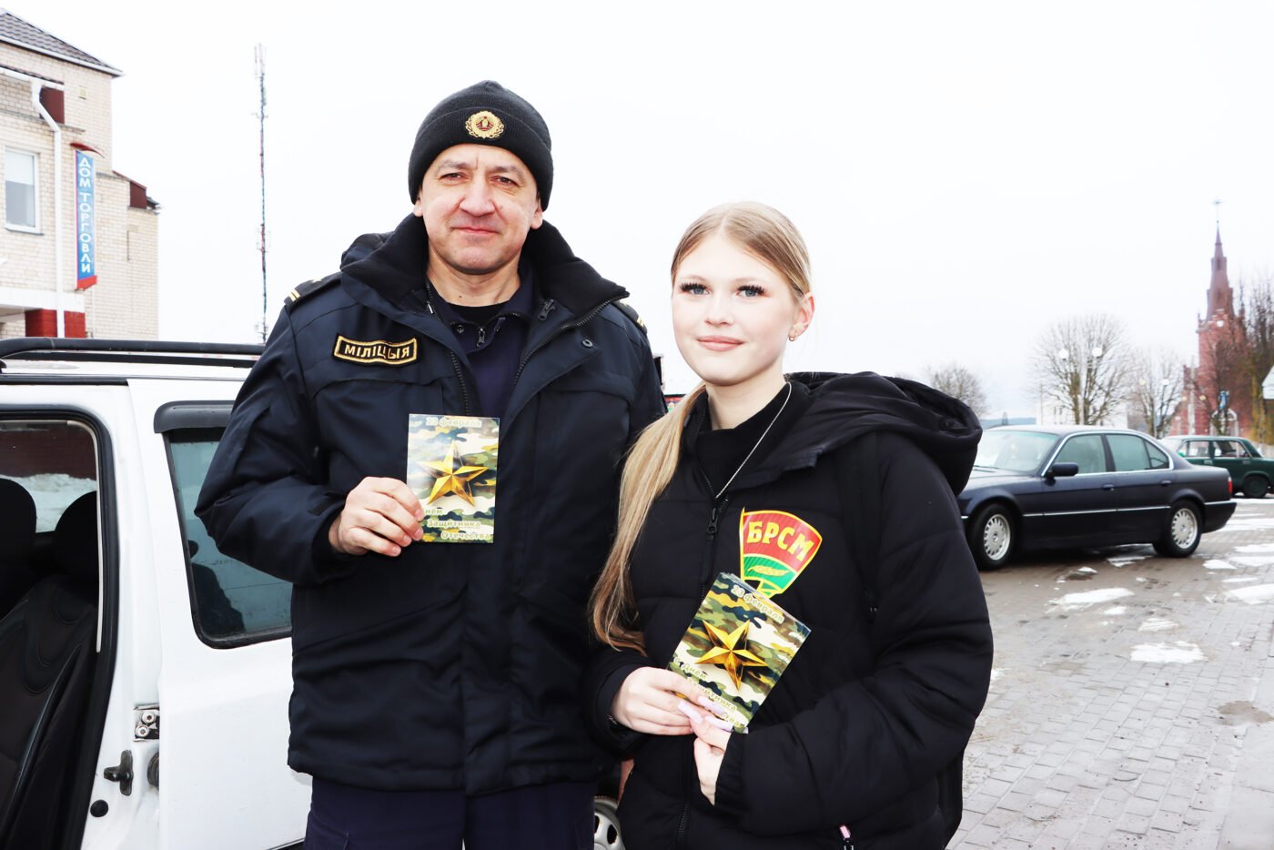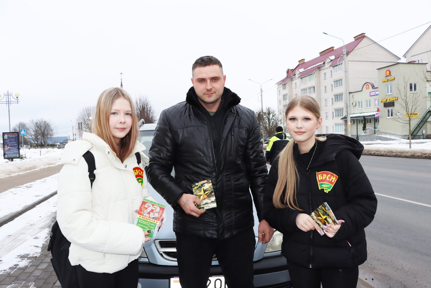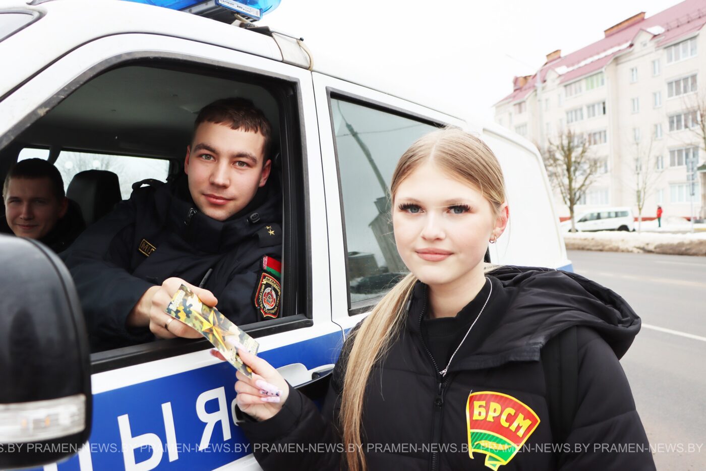 Районный комитет ОО «БРСМ» совместно с сотрудниками ГАИ провели праздничную акцию «Открытки нашим мужчинам» ко Дню защитников Отечества и Вооруженных Сил Республики Беларусь.