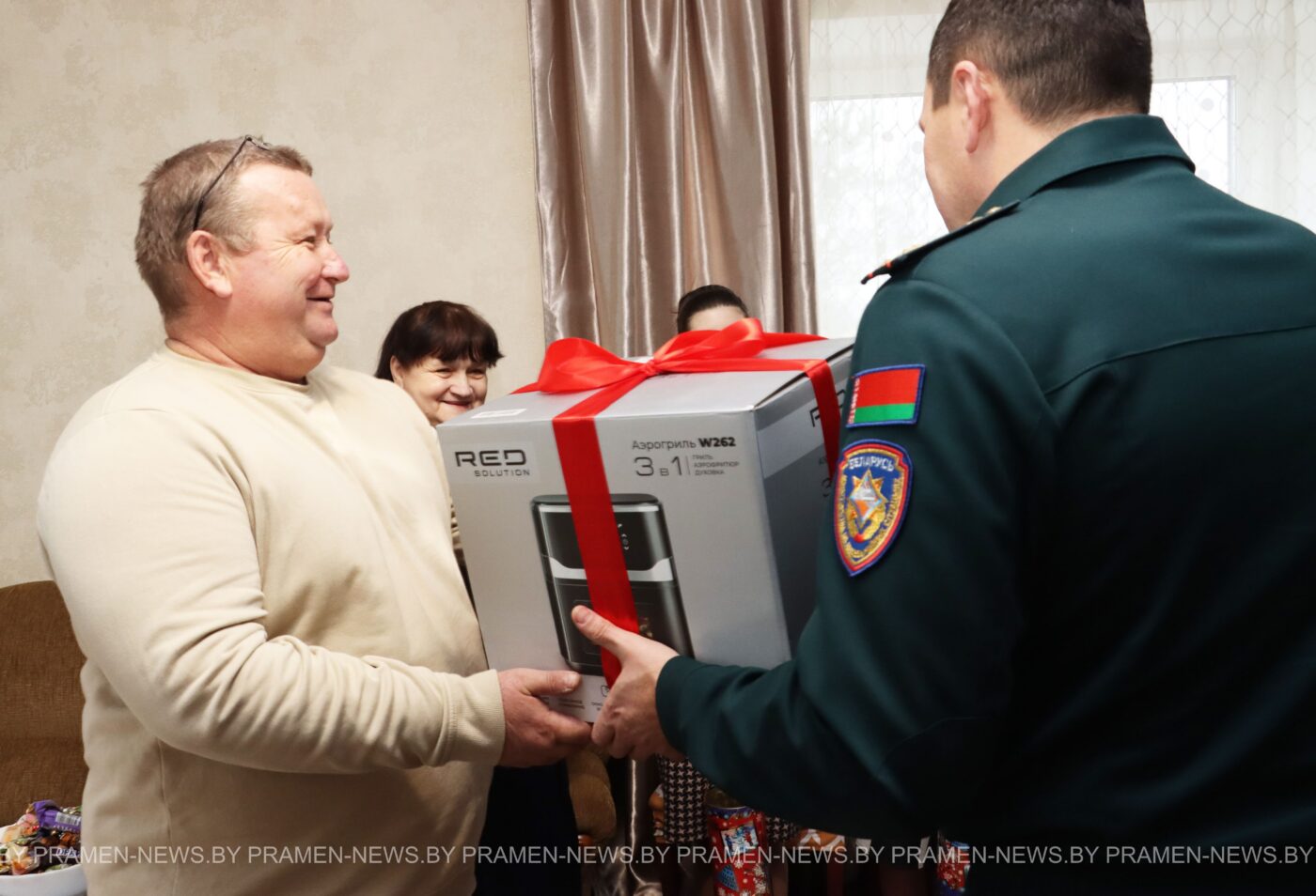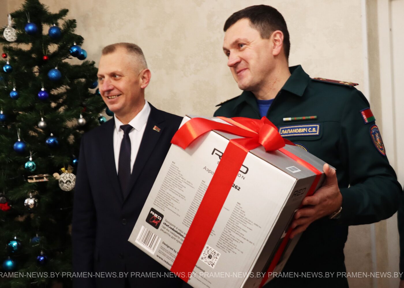 Не остались без подарков и взрослые. Сергей Лапанович вручил Екатерине и Александру Васильевым аэрогриль.