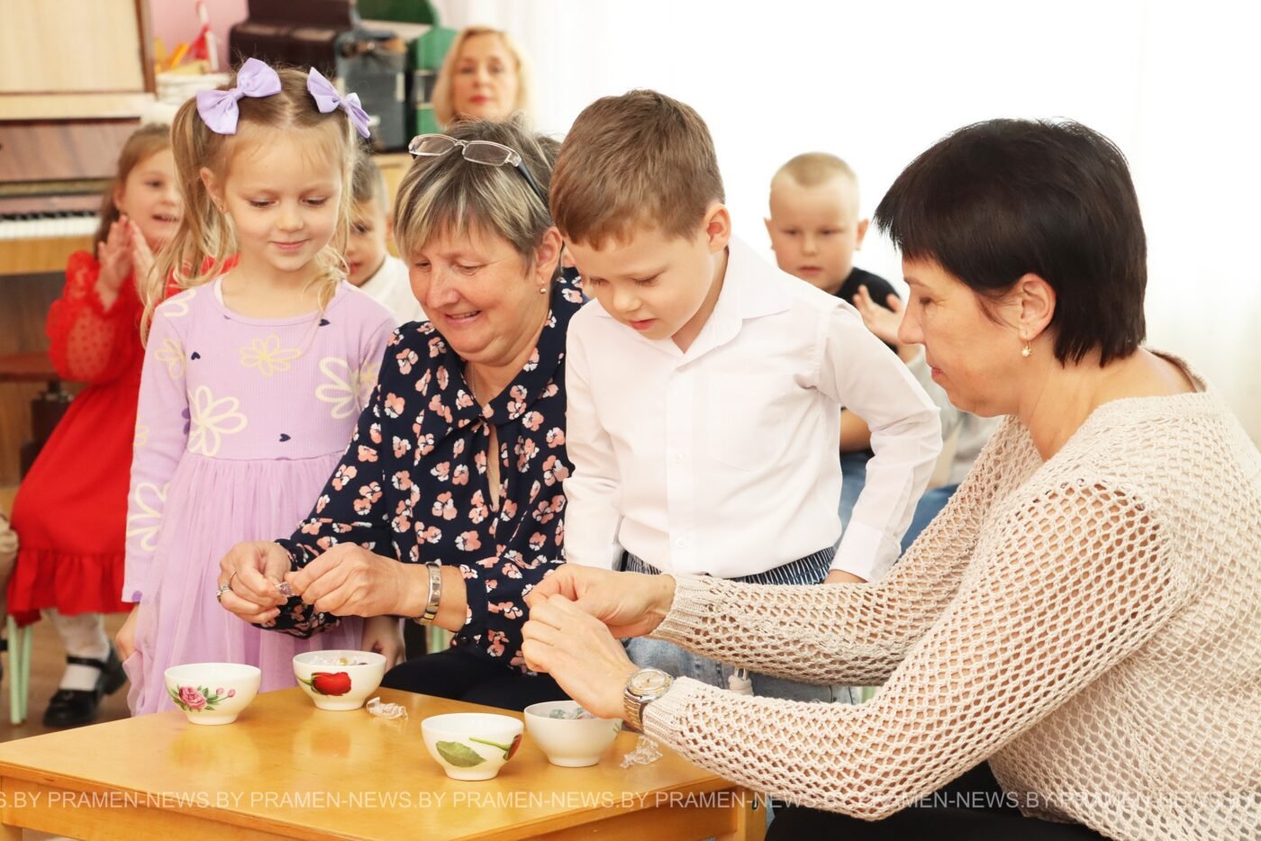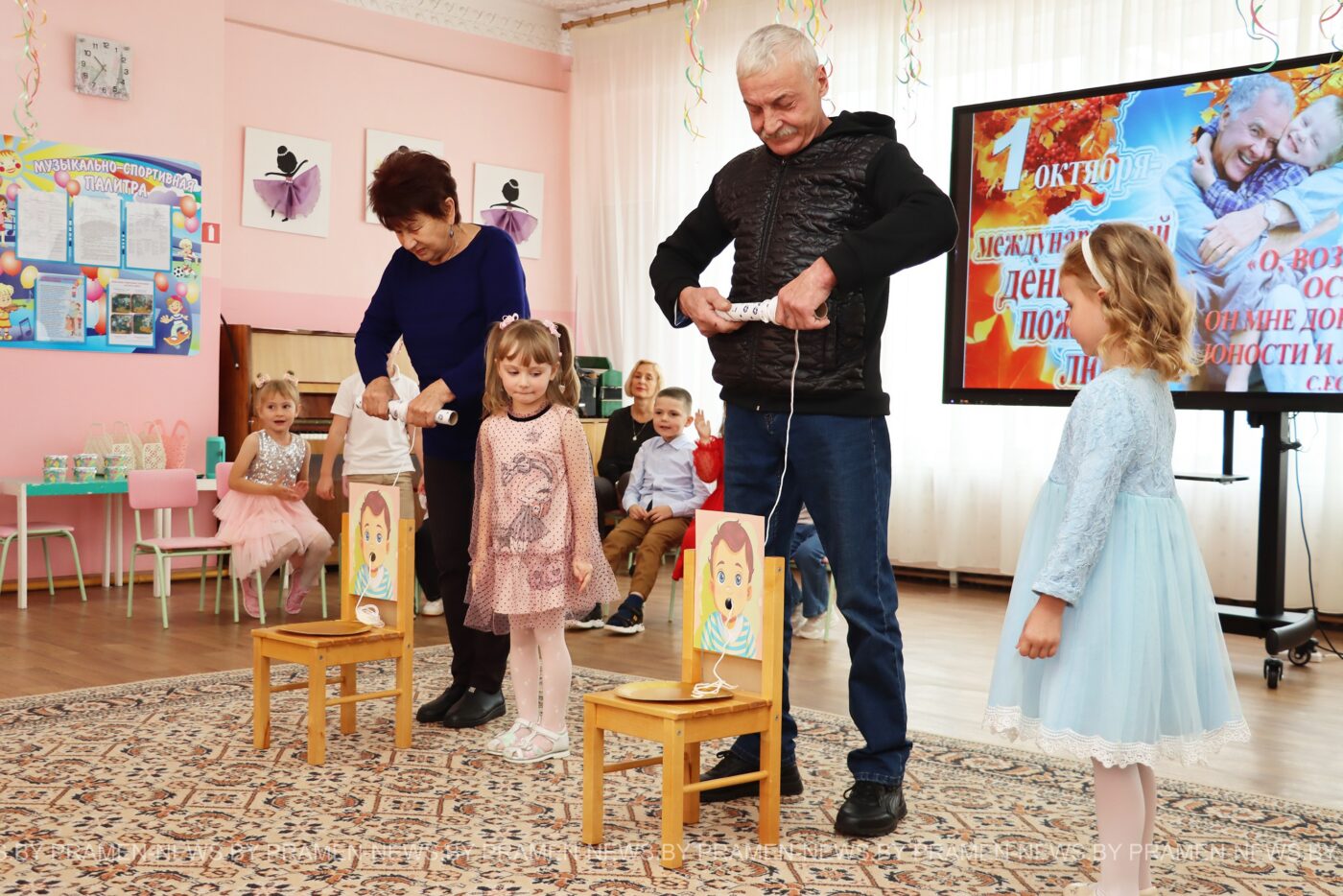 Для бабушек и дедушек воспитанники подготовили большую творческую программу: дети пели песни и задорные частушки, читали стихи и танцевали. Гости не остались в стороне — они с удовольствием участвовали в конкурсах и с большим энтузиазмом играли вместе с детьми.