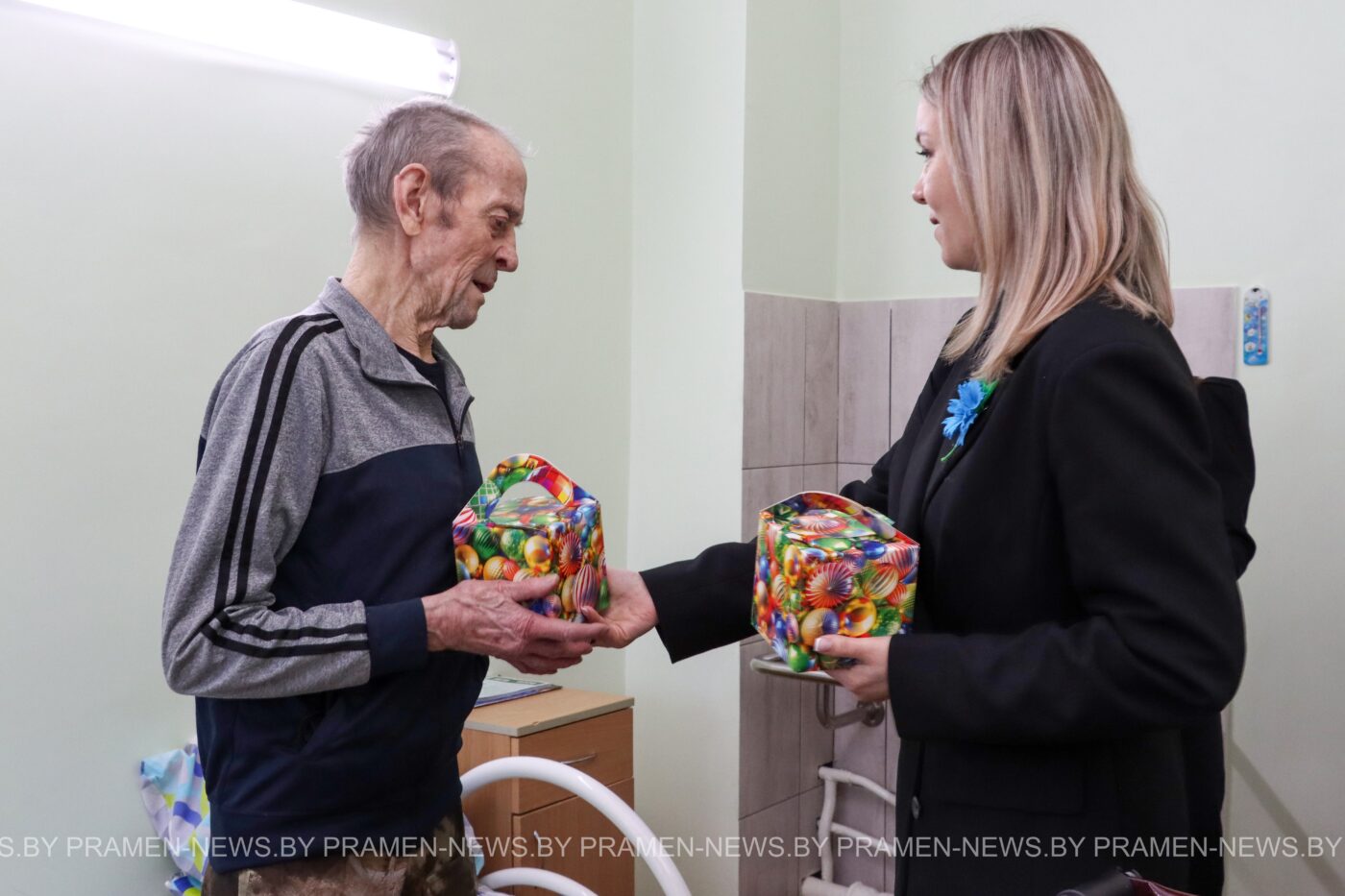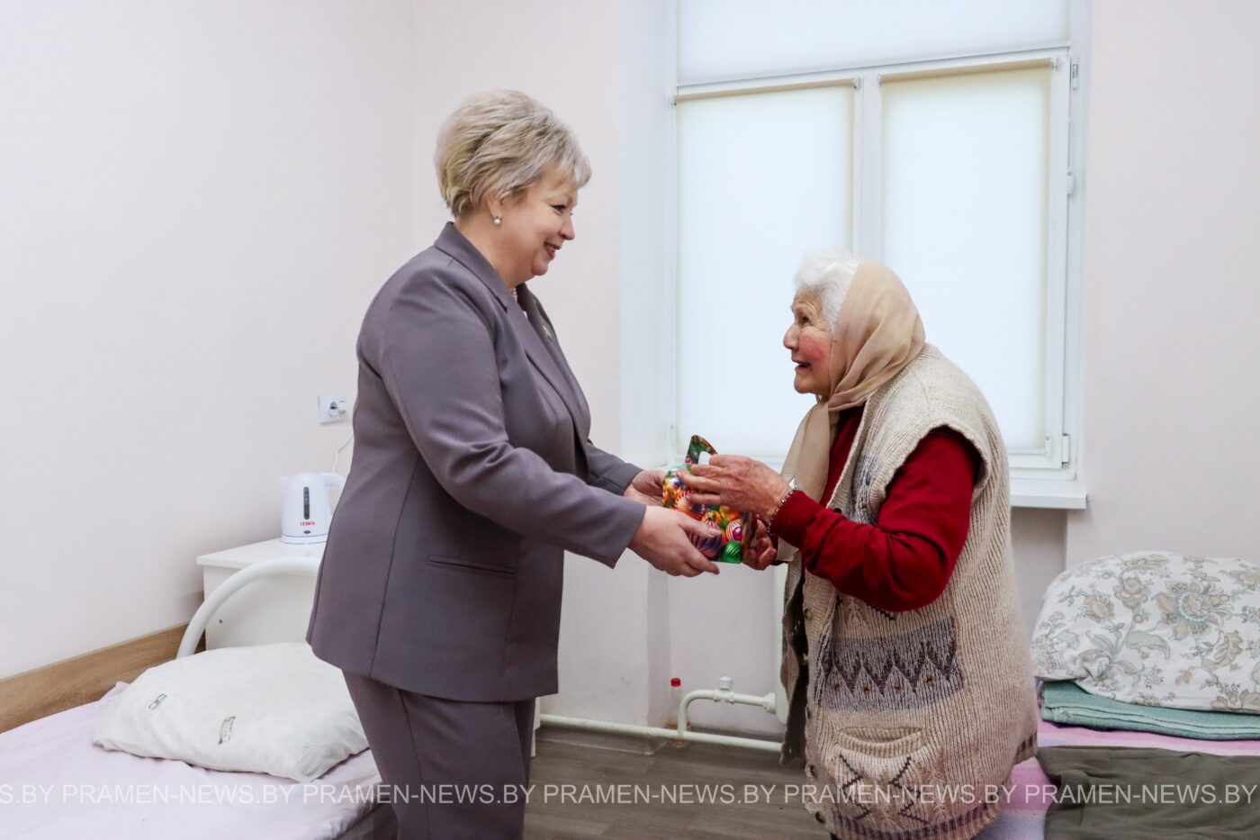 С вниманием и подарками к ним приехали заместитель председателя райисполкома Жанна Лысая, директор Столбцовского территориального центра социального обслуживания населения, председатель районной организации ОО «Белорусский союз женщин» Оксана Жибуль, а также председатель районной организации РОО «Белая Русь» Евгения Слесарчик.