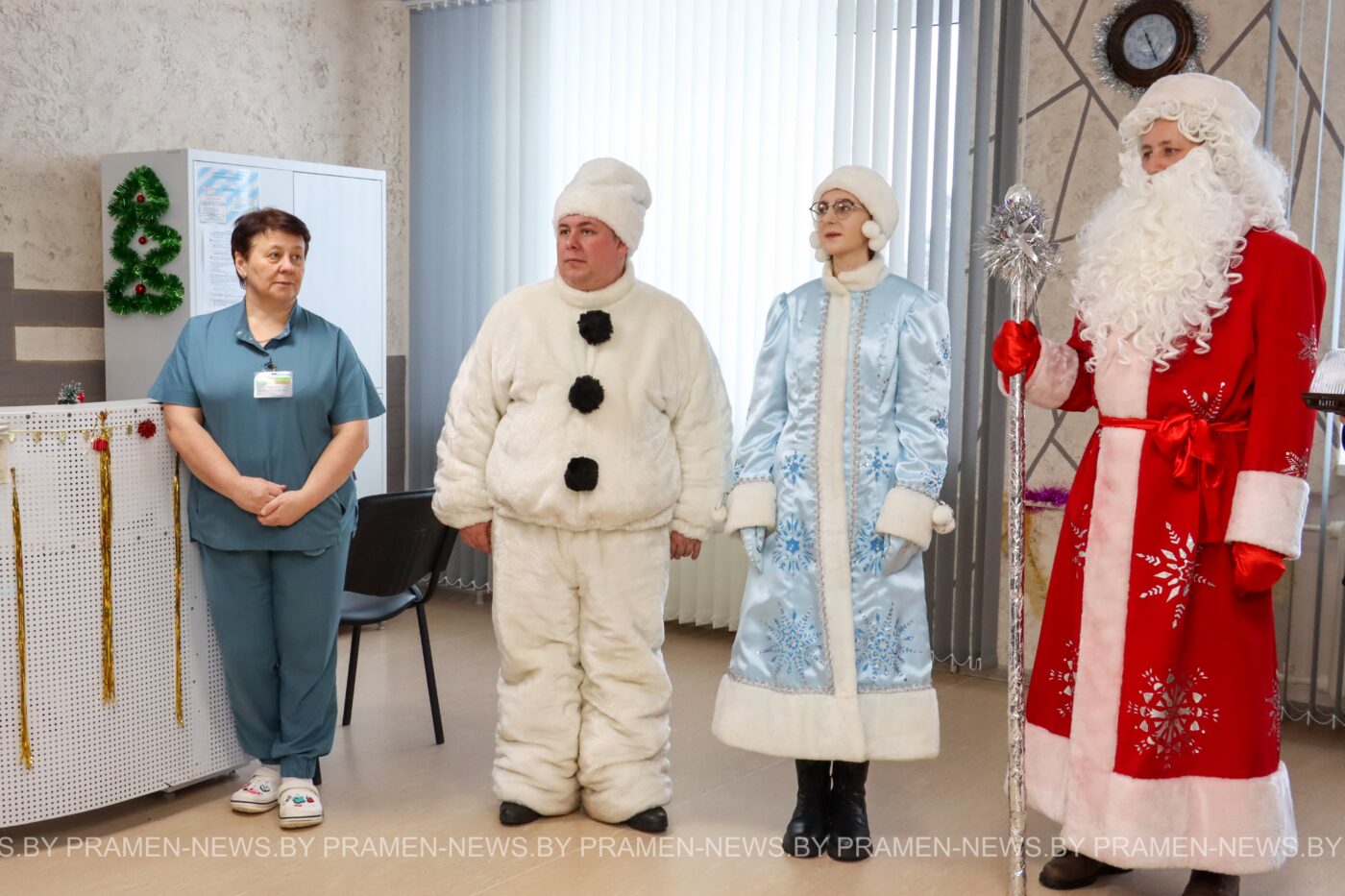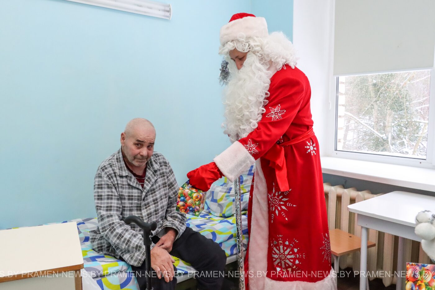 Вместе со сказочными персонажами гости поздравили постояльцев с наступающим Новым годом, пожелали мира, добра и благополучия и вручили сладкие подарки.