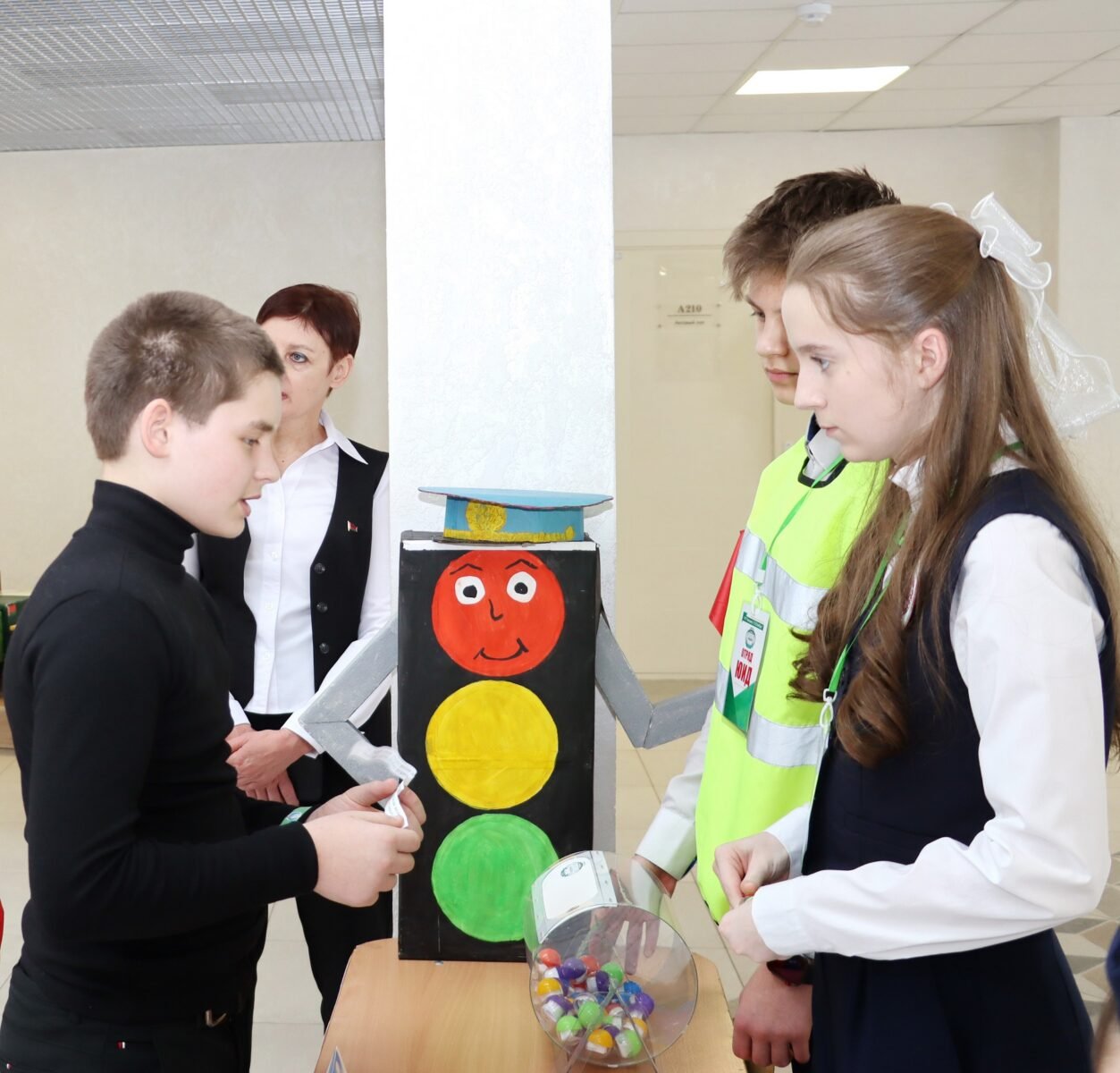 Организаторы постарались превратить проверку знаний в увлекательное событие. В холле школы ребята участвовали в творческих мастер-классах, обсуждали дорожные ситуации и, конечно же, делали «безопасные селфи».