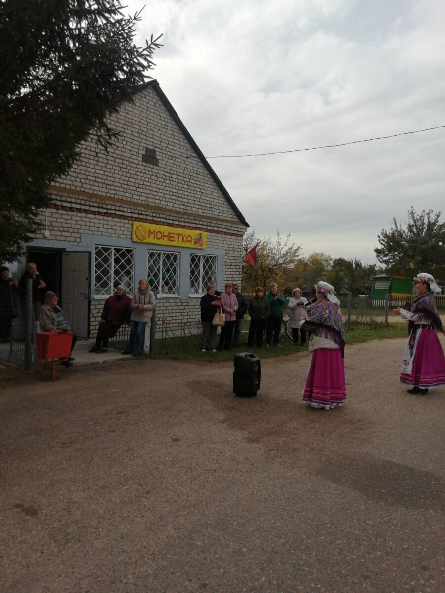 Староста деревни, Капустик Наталья Станиславовна, помогла организовать присутствие зрителей, а импровизированную сцену устроили прямо у сельского магазина, где собрались местные жители. Пусть зрителей было не так много, но их искренность, дружелюбие и радостные улыбки создали удивительную атмосферу. Артисты зажгли публику задорными песнями, зарядили своим оптимизмом.