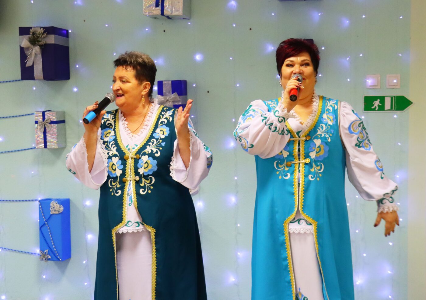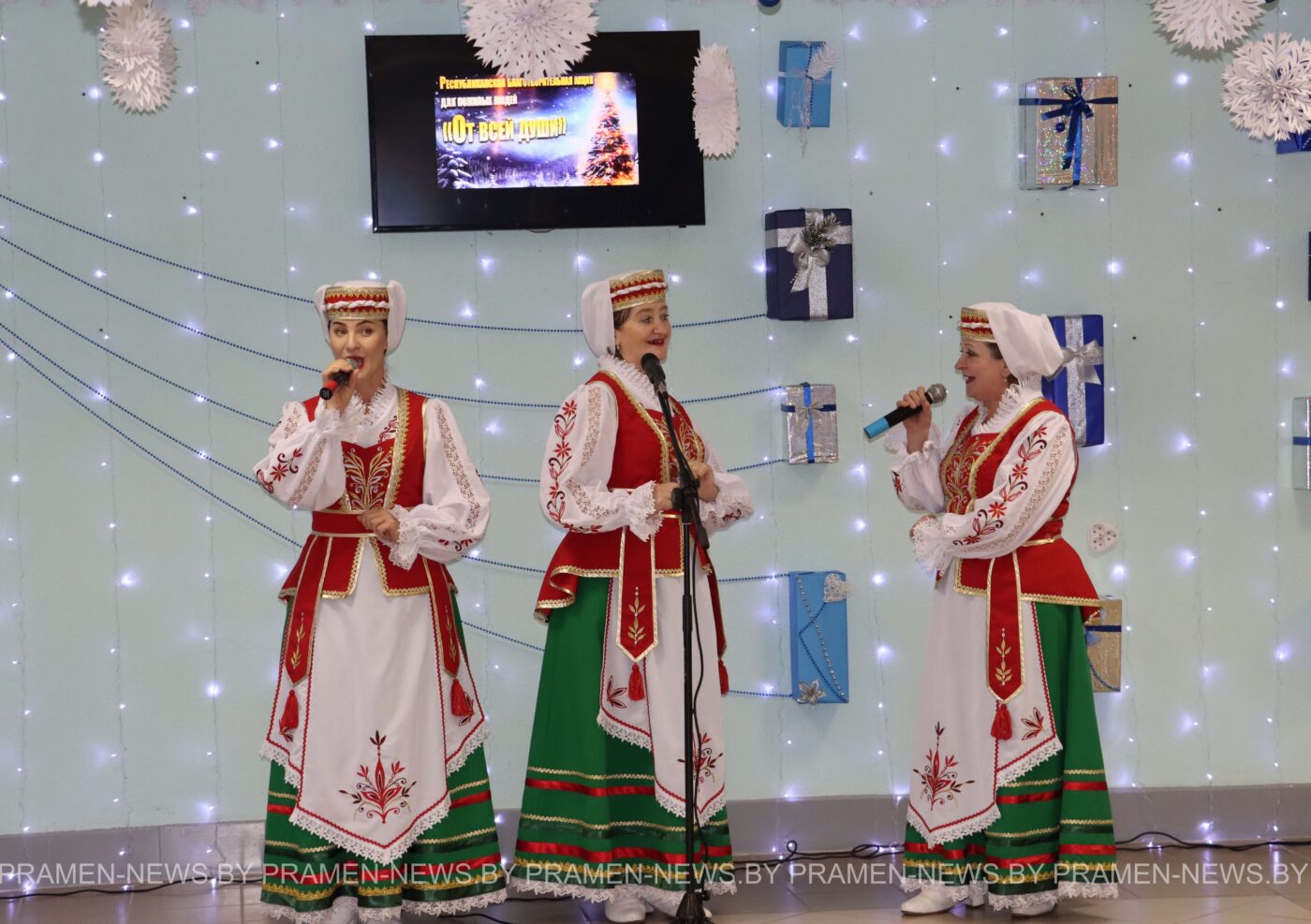 Особую атмосферу праздника создали работники культуры. Дуэт «Пяшчота», Марина Риштовская, Анина Бурлаченко, народный вокальный ансамбль «Дольница», образцовый хореографический ансамбль «Лявоначкі», а также Наталья Павлюченко, подарили гостям и проживающим хорошее настроение, исполнив добрые, новогодние песни и создав по-домашнему уютную атмосферу.