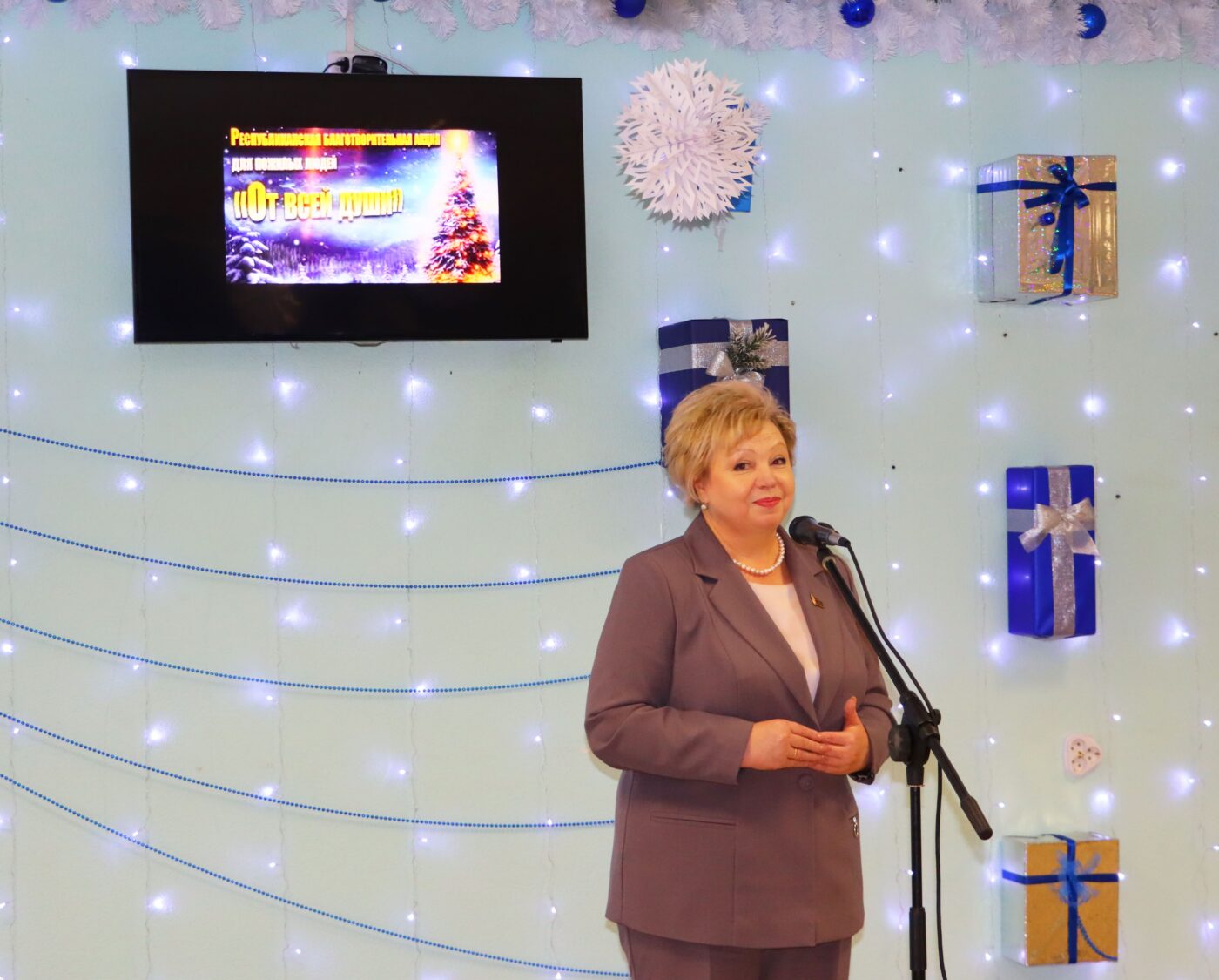 Обращаясь к проживающим в пансионате, Жанна Лысая отметила, что преддверие светлых и чудесных праздников — Нового года и Рождества — это замечательная возможность провести акцию «От всей души».