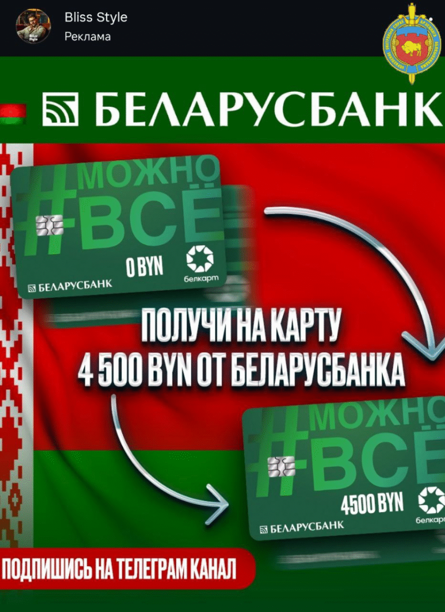 В интернете вновь появились мошеннические объявления от имени Беларусбанка, в которых преступники под видом «акций» и «государственных программ» предлагают получение крупных денежных сумм — например, 4000 BYN.