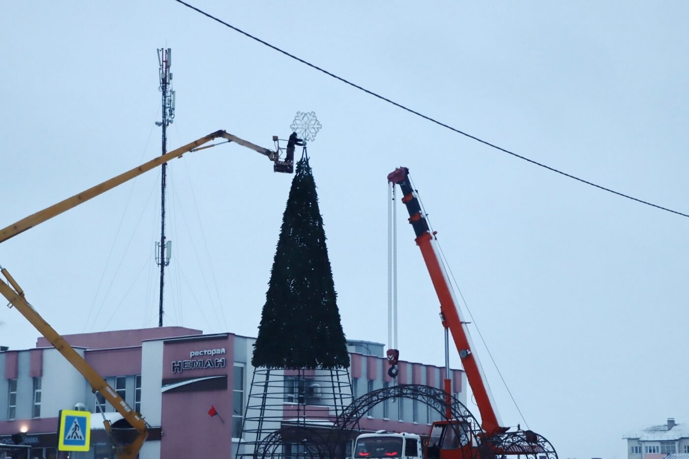 Фотофакт: демонтаж главной ёлки в Столбцах