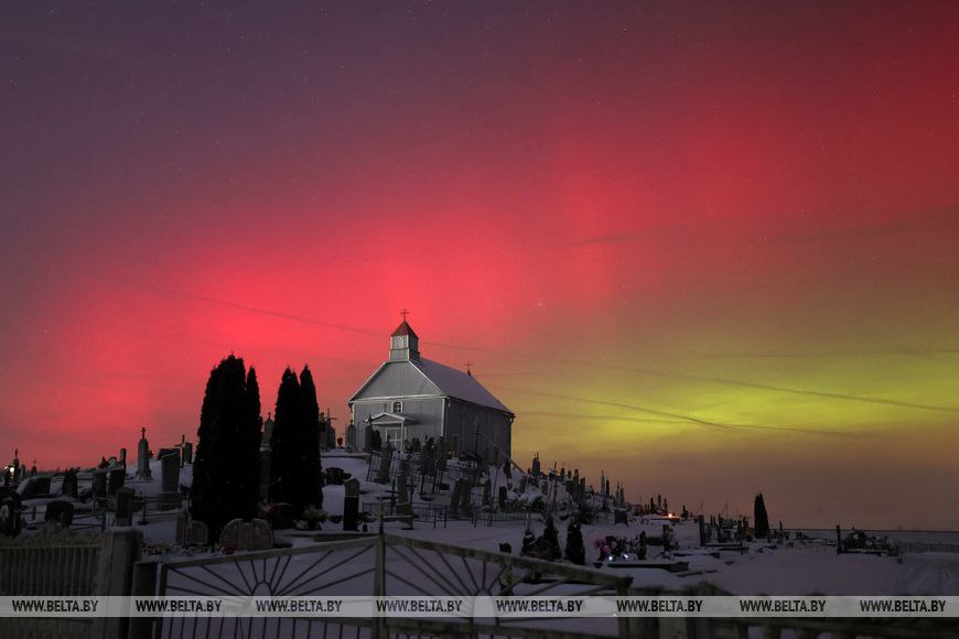 Мощная вспышка на Солнце вызвала экстремальную геомагнитную бурю и вместе с ней появились яркие полярные сияния на большей части Беларуси, сообщает БЕЛТА.