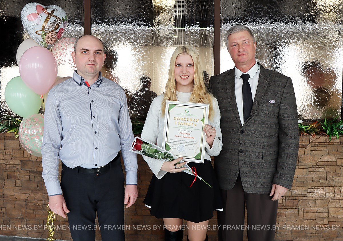 К поздравлениям присоединились заместитель председателя первичной профсоюзной организации, заместитель директора по идеологической работе Александр Шарапа и член профкома, начальник лесохозяйственного отдела Александр Ковгореня. Они вручили награды от профсоюзного комитета.