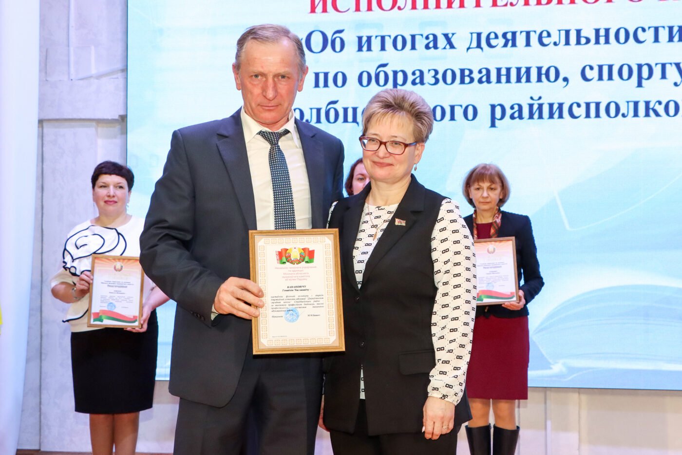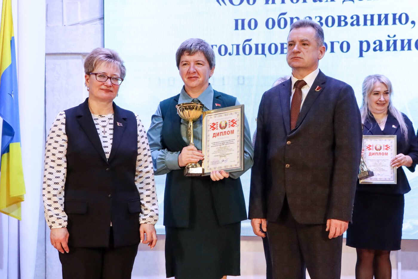 Далее состоялась традиционная церемонию награждения лучших учреждений образования и педагогов Столбцовщины, которую провели начальник управления по образованию и спорту Столбцовского райисполкома Людмила Стонько и председатель Столбцовского районного комитета профессионального союза работников образования и науки Дмитрий Климович.