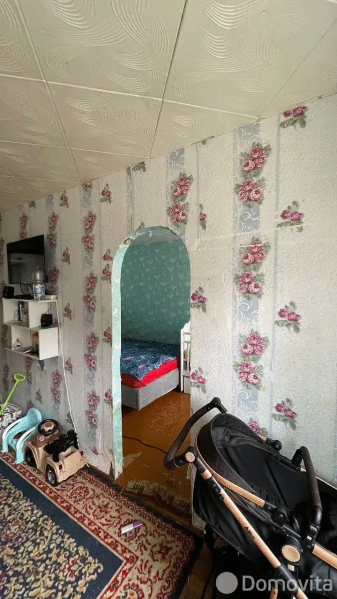 Для тех, кто ищет совсем дешевые варианты — трёхкомнатная квартира площадью 77,6 квадратных метра на первом этаже в небольшом агрогородке. Это уже полноценный дом: свой участок перед окнами, просторный подвал с входом из квартиры и независимое отопление на газу. Мебель остаётся при продаже. Цена за квадратный метр — всего 414 рублей.
