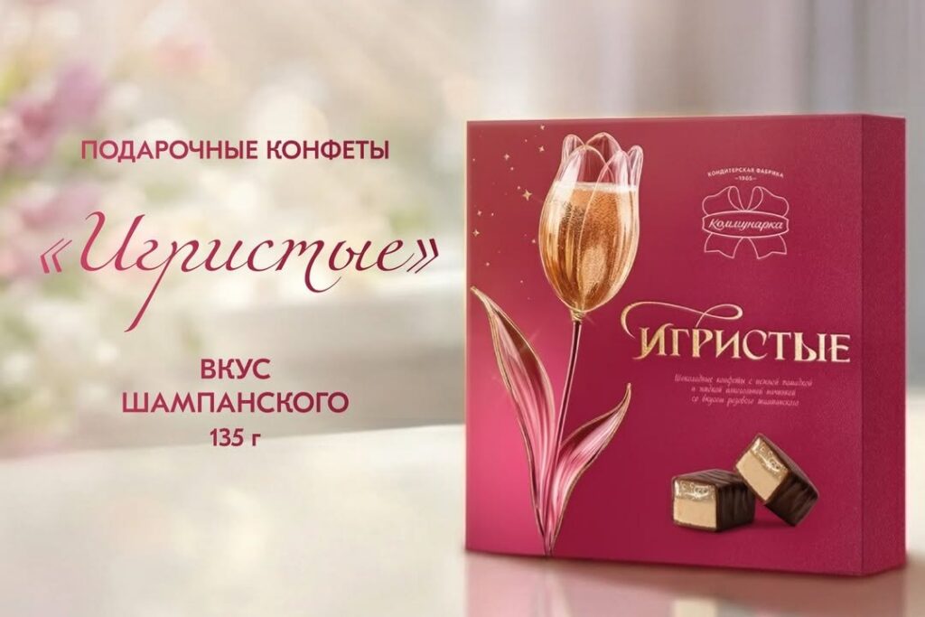 Центральной новинкой стал набор под названием «Игристые». Коробка весом 135 граммов уже появилась на полках магазинов, включая фирменные точки фабрики, по цене 15,05 рубля.