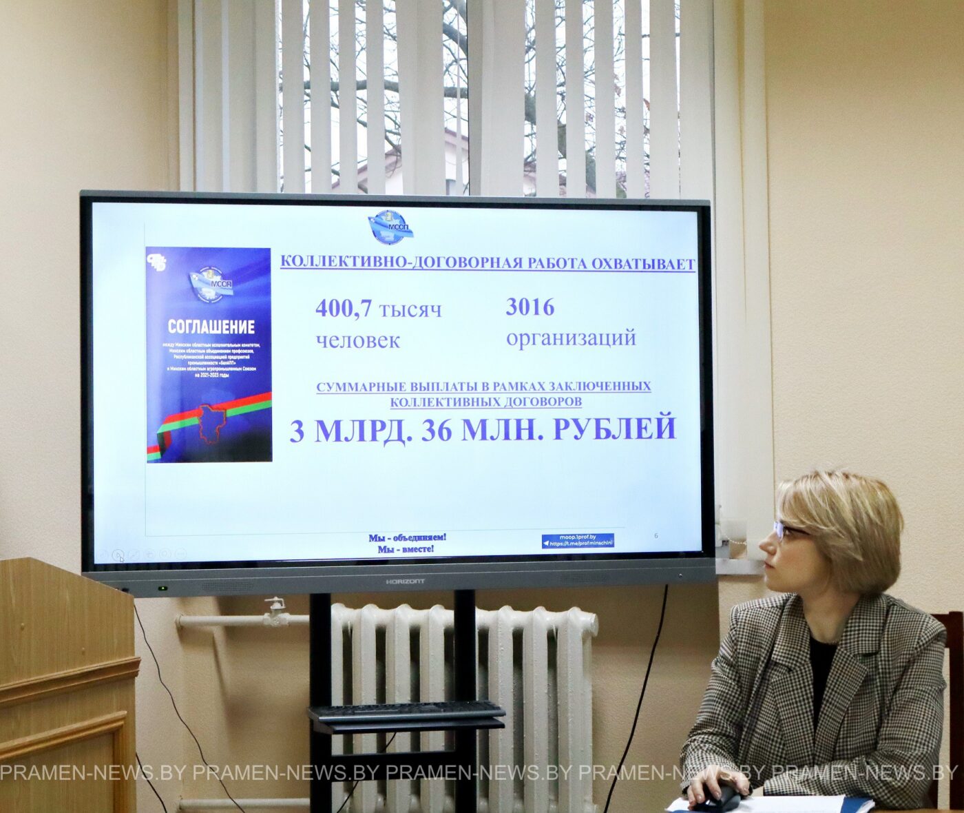 Представители отраслевых профсоюзов подробно остановились на конкретных направлениях работы. Председатель областной организации Минска и Минской области Белорусского профсоюза работников отраслей промышленности «БЕЛПРОФМАШ» Юрий Васенков рассказал о развитии коллективно-договорной работы.