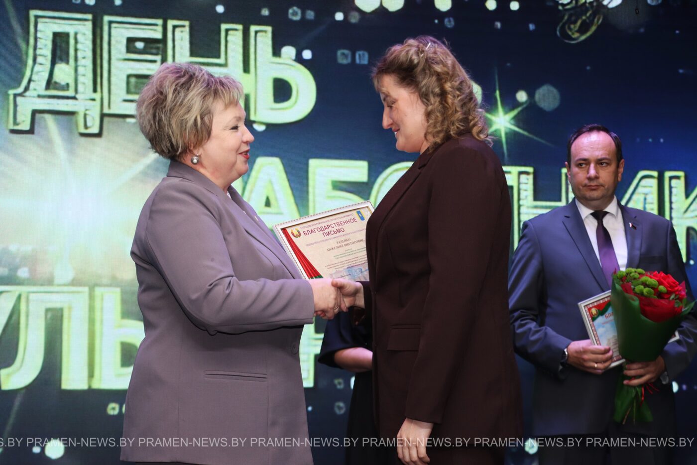 Благодарность председателя Столбцовского райисполкома за многолетний добросовестный труд была объявлена директору ГУ «Столбцовский районный центр культуры» Валерию Пугачу, директору ГУО «Старосверженская детская школа искусств» Анастасии Скулковой.
