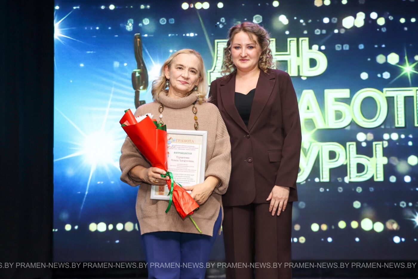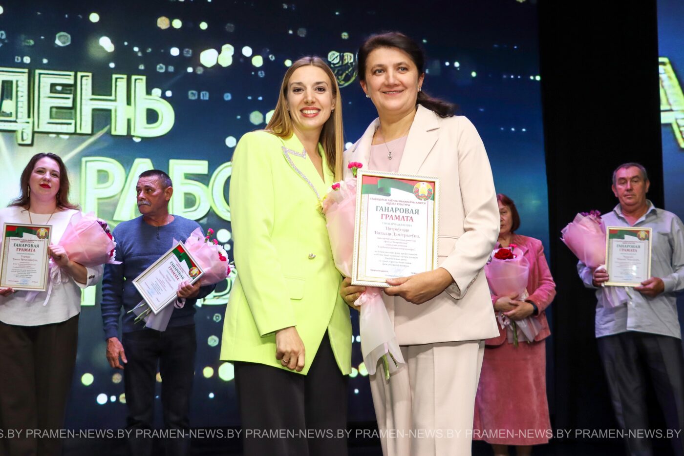Почётной грамоты главного управления культуры Минского облисполкома за добросовестный труд и профессионализм были удостоены методист по нестационарному обслуживанию населения ГУ «Столбцовский районный центр культуры» Галина Азанович; руководитель филиала «Горковский сельский дом культуры» Зоя Овласина; культорганизатор филиала «Горковский сельский дом культуры» Оксана Белаева; заместитель директора по воспитательной работе ГУО «Столбцовская детская школа искусств» Настасья Барьясь.