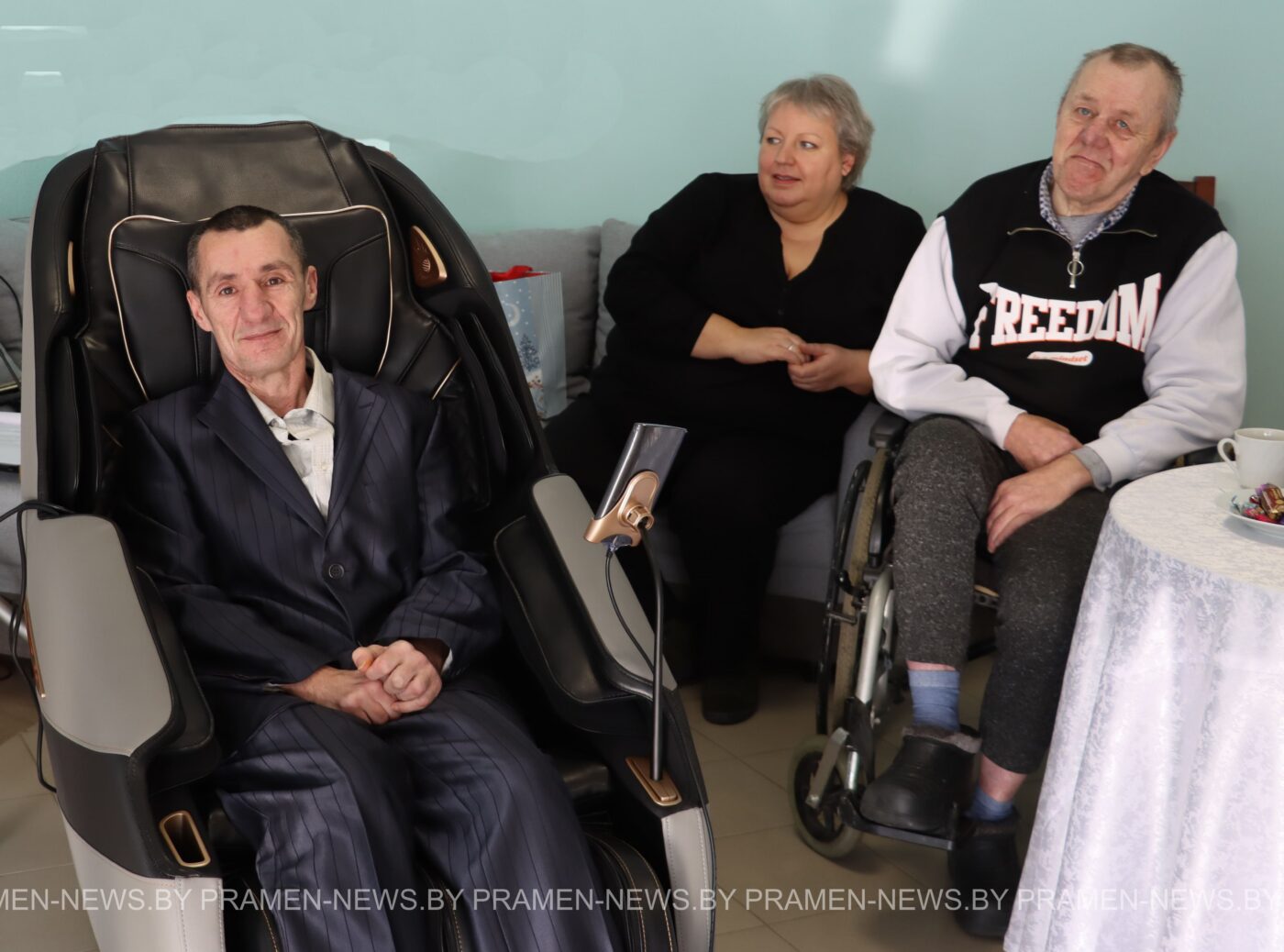 Марина Щигло вручила постояльцам пансионата два значимых подарка. Первый — многофункциональное массажное кресло, рекомендованное людям пожилого возраста в качестве средства реабилитации и профилактики. Оно поможет снять стресс, улучшить кровообращение, облегчить боли, справиться с бессонницей и подарит ощущение расслабления и комфорта. \