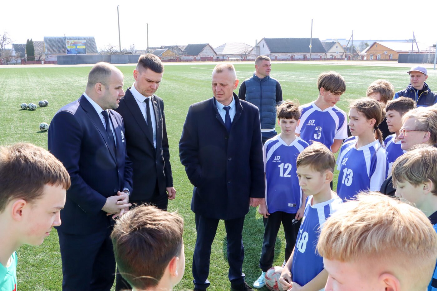 Совместно с председателем райисполкома Андреем Атрушкевичем гости посетили тренировку юных футболистов детско-юношеской спортивной школы, где встретились с воспитанниками и тренерами.