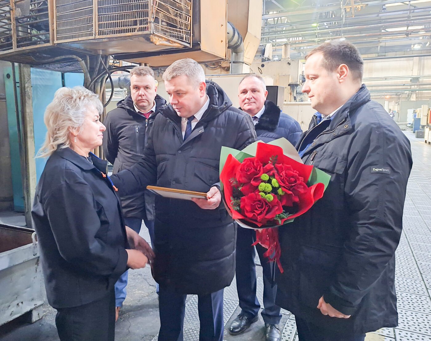 Завершая визит, Андрей Кузнецов и Александр Ботвинник поздравили работниц филиала с наступающим Международным женским днём 8 Марта и вручил ведомственные награды наиболее отличившимся сотрудницам предприятия.