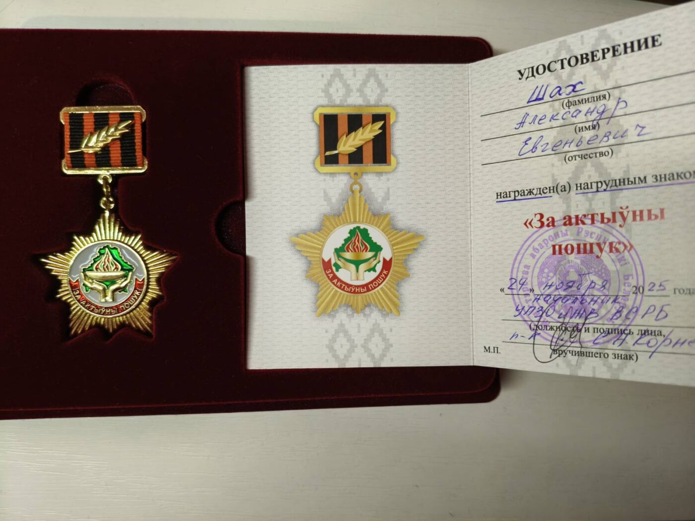 Известие о награждении нагрудным знаком оказалось для Александра Шаха приятным и неожиданным. Служить ему довелось в 52-м отдельном специализированном батальоне, который занимается увековечиванием памяти павших защитников Отечества и жертв войн. Благодаря этой деятельности устанавливается все больше исторической правды о геноциде белорусского народа во время Великой Отечественной войны.