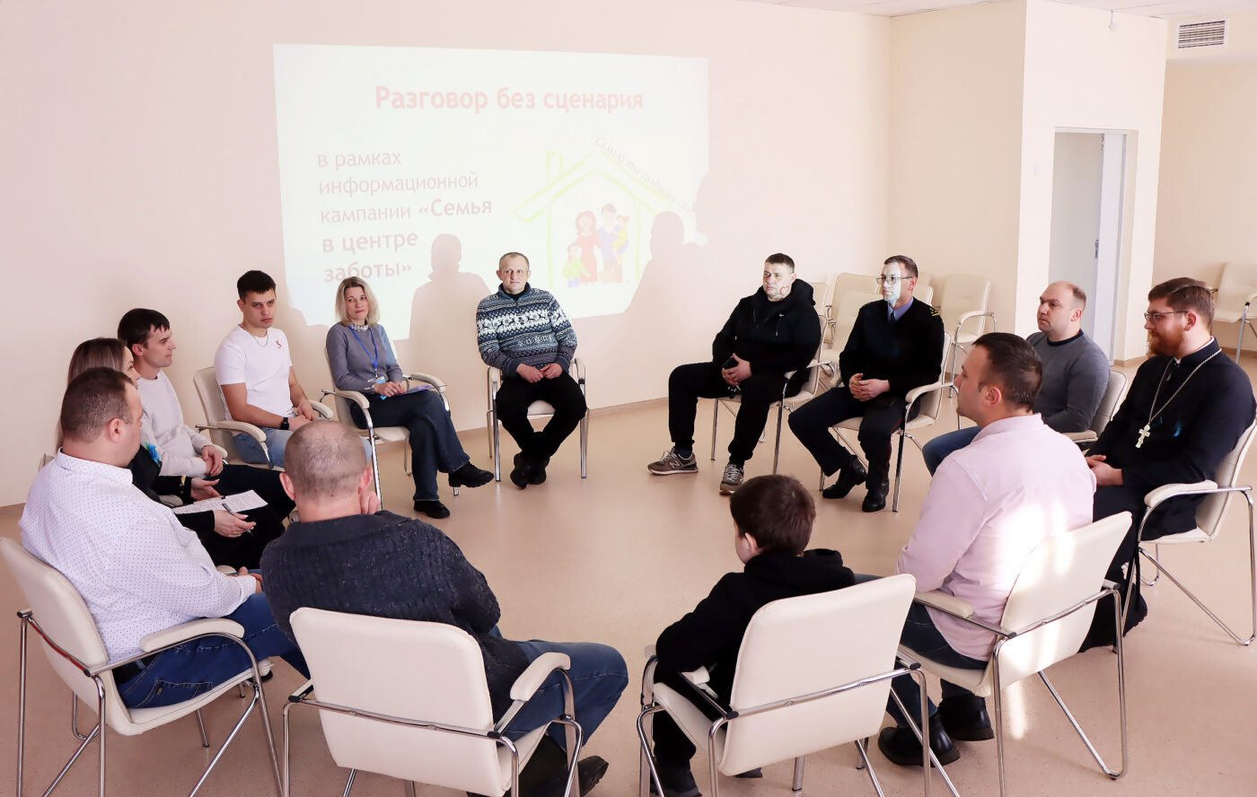 Состав участников оказался весьма разнообразным: здесь собрались многодетные отцы, мужчины, воспитывающие детей в одиночку, главы семей, прошедшие через трудные жизненные обстоятельства, и даже молодые люди, которые только планируют создать свой очаг. Активным участником разговора стала психолог центра Инна Сенько.