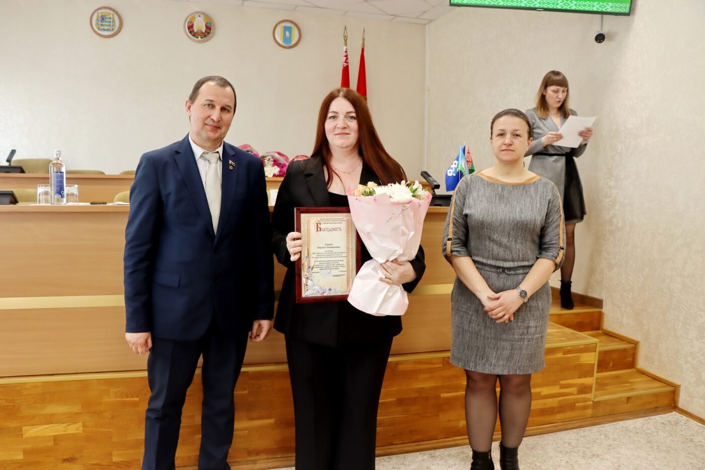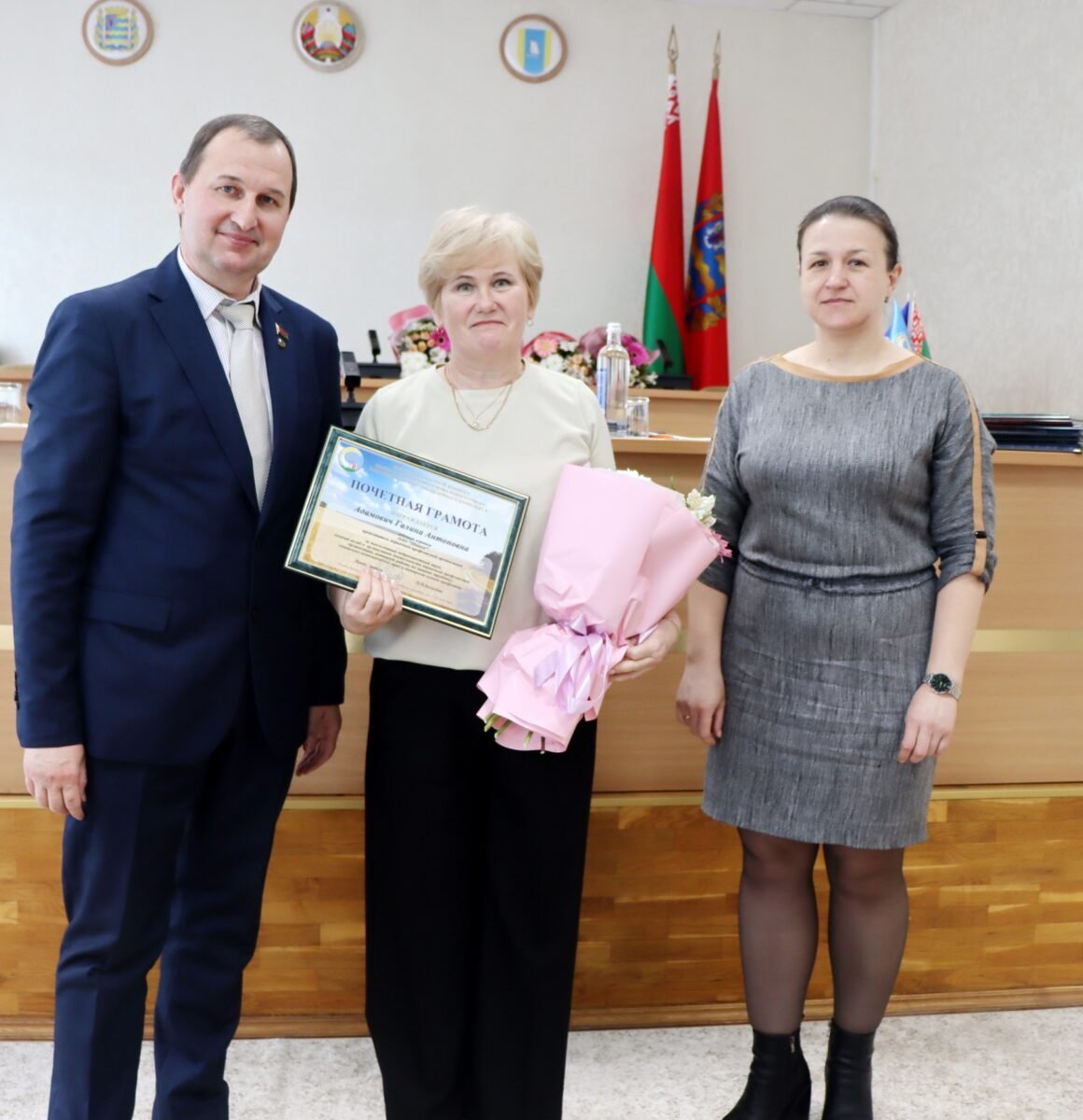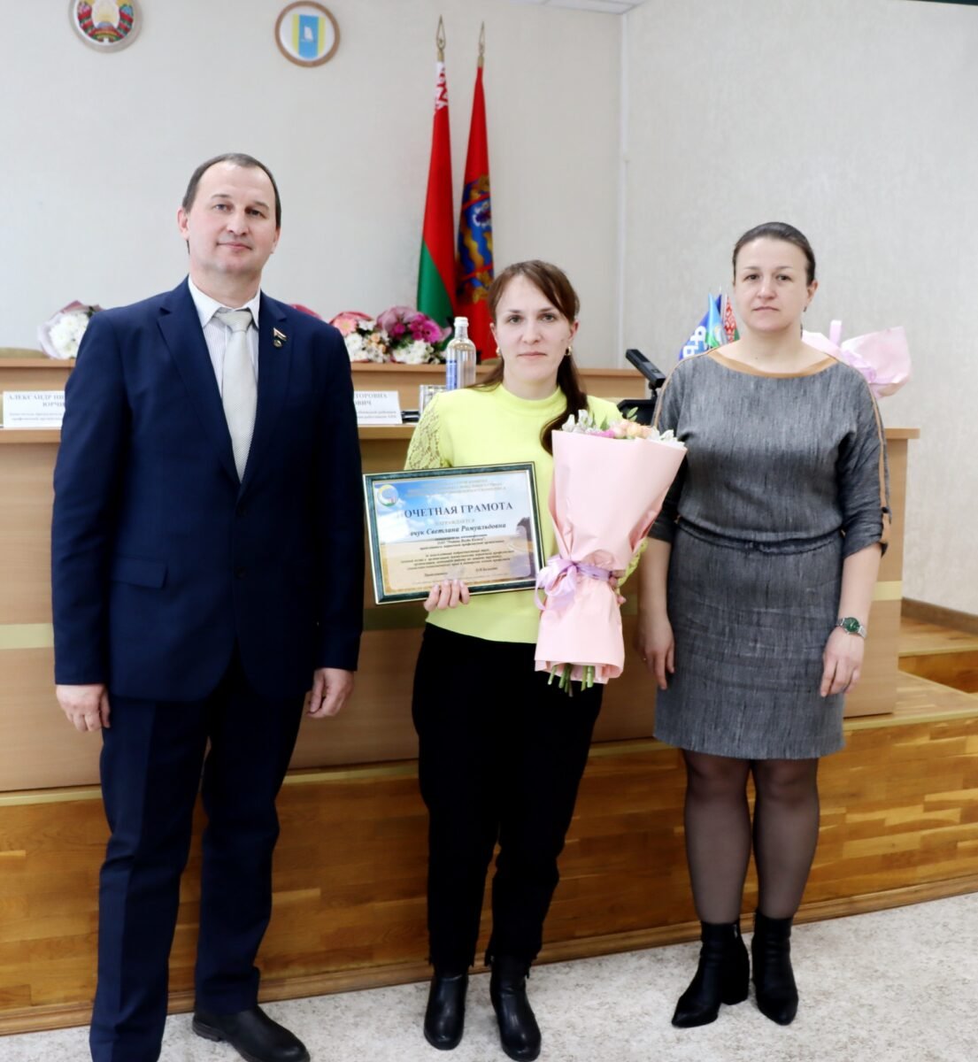 Почетными грамотами Столбцовского районного комитета Белорусского профсоюза работников АПК отмечены председатели первичных профсоюзных организаций Елена Рокаш (ОАО «Жатерево»), Анастасия Караневская (ОАО «Агронеманский»), а также казначеи Клавдия Медведь (ОАО «Великий Двор») и Наталья Кульша (ДУП «ПМК-233»).