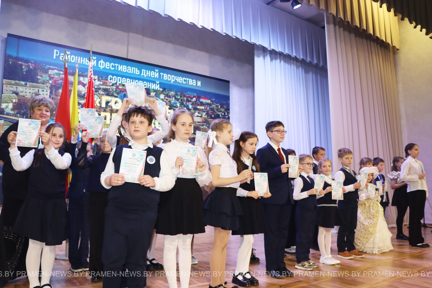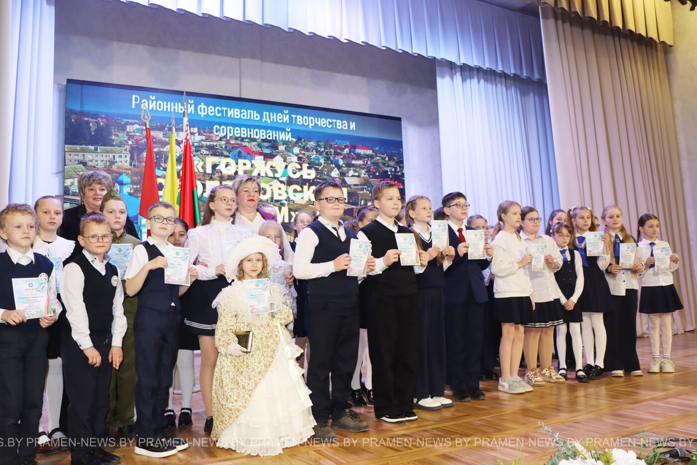 В стенах средней школы № 4 г. Столбцы сегодня собрались талантливые ученики начальных классов учреждений образования района, которые стали лучшими в различных конкурсах, проводимых в рамках районного фестиваля днейтворчества и соревнований «Горжусь Столбцовским краем». Это конкурс литературно-музыкальных композиций «Сердцем к подвигу прикоснись, посвящённый 81-й годовщине Победы над немецко-фашистскими захватчиками, конкурс театрализованных коллективов «Казка і песня ходзяць у пары, сеюць па свеце дзівы і чары”, конкурсы семейного чтения “З “Вясёлкай” крочым па жыцці”, юных модельеров и дизайнеров “Жывіца – 2026”, “Беларусь — наш край”, “Надзейныя сябры літаратуры”, “Чудо-шашки”, “Мир юных конструкторов”, “Сила слова”, “Мама и я – на все руки мастерицы”, “Папа и я – на все руки мастера”, арт-фестиваль юных художников.