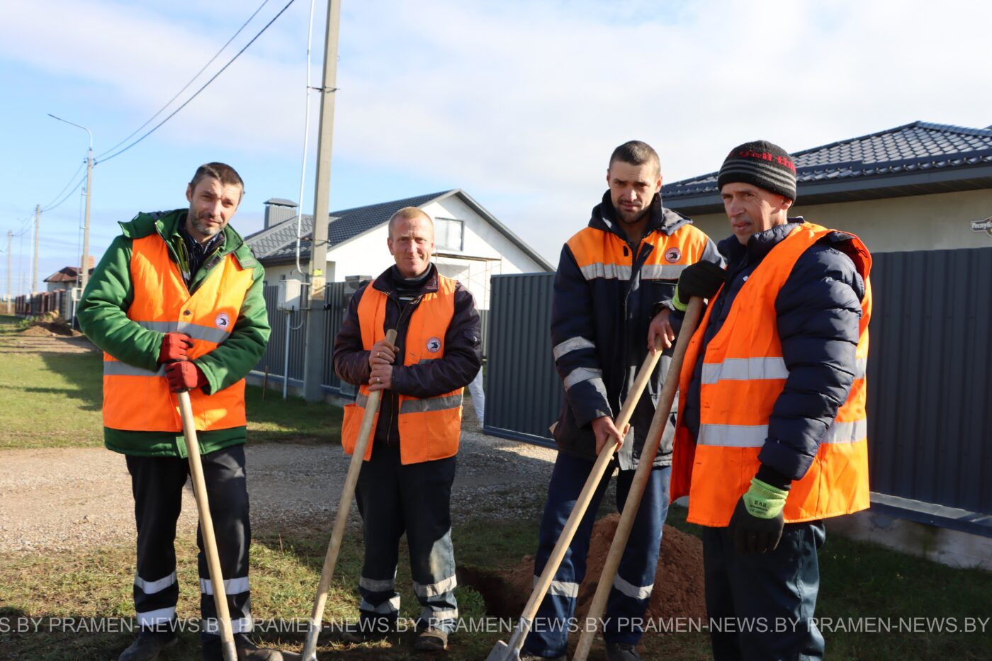 начальник планово-производственного отдела Сергей Логвин, трактористы Иосиф Колодинский и Виктор Альхименко, водитель погрузчика Сергей Супранович, машинист автогрейдера Анатолий Липницкий;