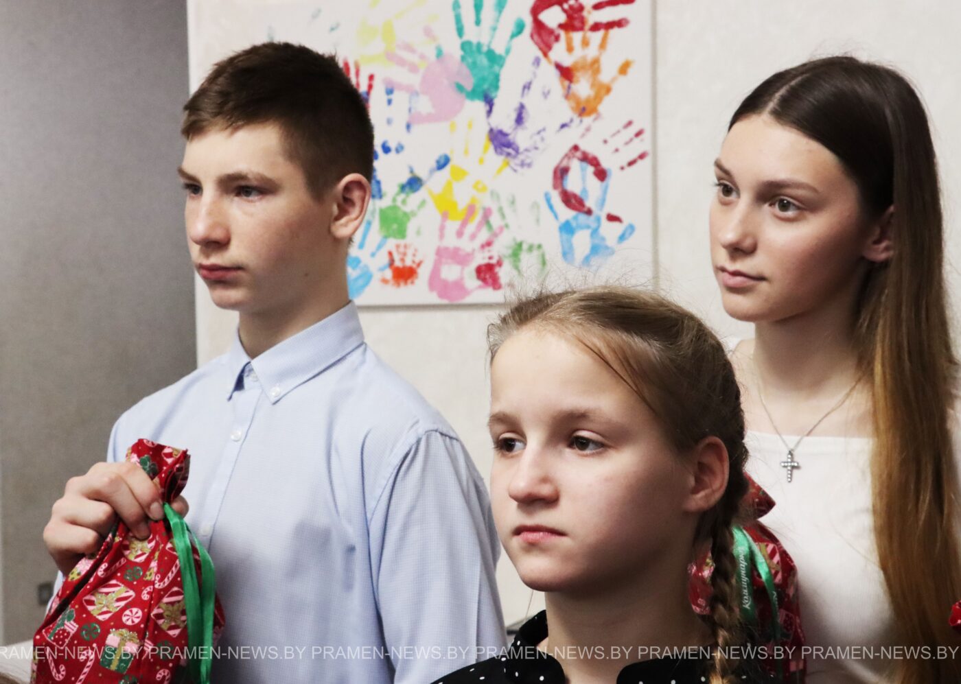 С Новым годом ребят поздравили Андрей Атрушкевич и Александр Новицкий, пожелав им крепкого здоровья, радости, исполнения самых заветных желаний и, конечно, мира в сердце и в доме. Председатель райисполкома высказал слова благодарности родителям за воспитание детей.