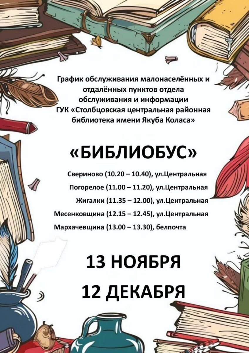Новый график обслуживания библиобусом малонаселенные и отдаленные пункты Столбцовского района