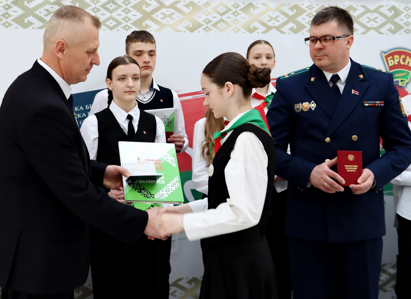 Почетное право вручить документы ребятам предоставили председателю Столбцовского районного исполнительного комитета Андрею Атрушкевичу и прокурору Столбцовского района Александру Алисевичу.