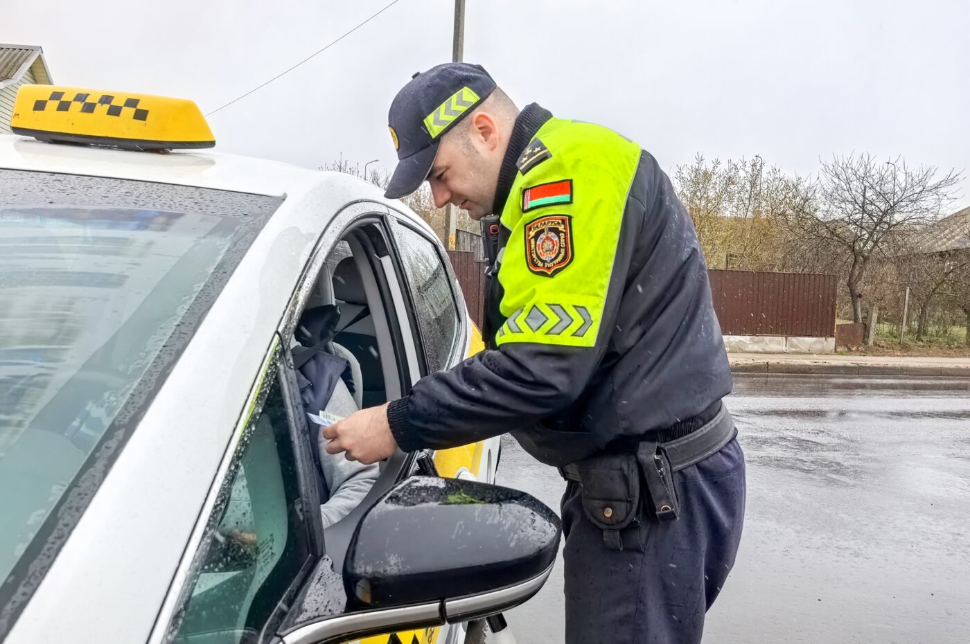 В ходе проверки у водителя автомобиля-такси было выявлено два нарушения: водитель был не пристегнут ремнем безопасности (он не осуществлял перевозку пассажира (согласно п. 9.5 Правил дорожного движения)); у водителя отсутствовали документы на транспортное средство (свидетельство о регистрации на транспортное средство, допуск к участию в дорожном движении и договор обязательного страхования транспортного средства).