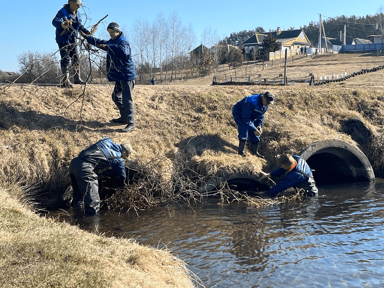 Восстановление дорожного полотна: совместными усилиями коммунальных служб и дорожных организаций устранены заторы изо льда и мусора на реке Жатеревка, проведены работы по подсыпке и грейдированию размытого участка улицы Лесной, обеспечен объезд для спецтехники.