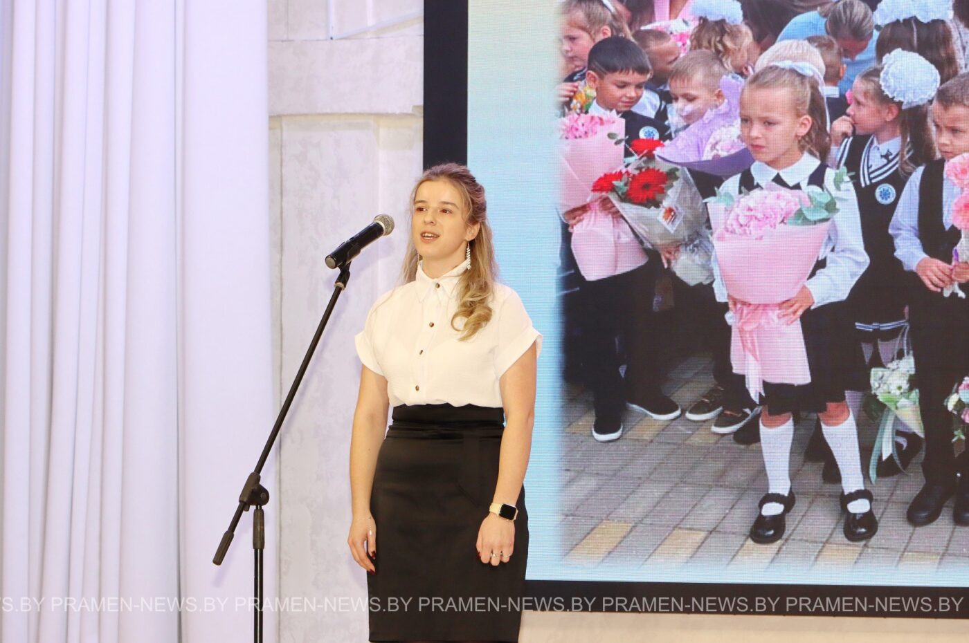 — Приятно видеть на этой сцене молодых, таких оптимистически настроенных, креативных, уверенных профессионалов своего дела — наших педагогов. Уже позади отдельные конкурсные испытания, и сегодня вы покажете себя с такой креативной стороны, как можете в любой ситуации себя повести. Сидящие здесь в зале и в жюри конкурса — это те люди, которые точно так же, как и вы, выступали на этой сцене. Дорогие наши педагоги, участники конкурса, вы уже победители на своих этапах, поэтому я вас с этим поздравляю. Я вам желаю показать себя как можно лучше со стороны как педагога, так и личности. Потому что педагог — это в первую очередь личность. Личность, от которой зависит будущее нашей страны. Ведь мы с вами сеем разумное, доброе, вечное. Успехов всем, и, конечно же, пусть победит сильнейший!