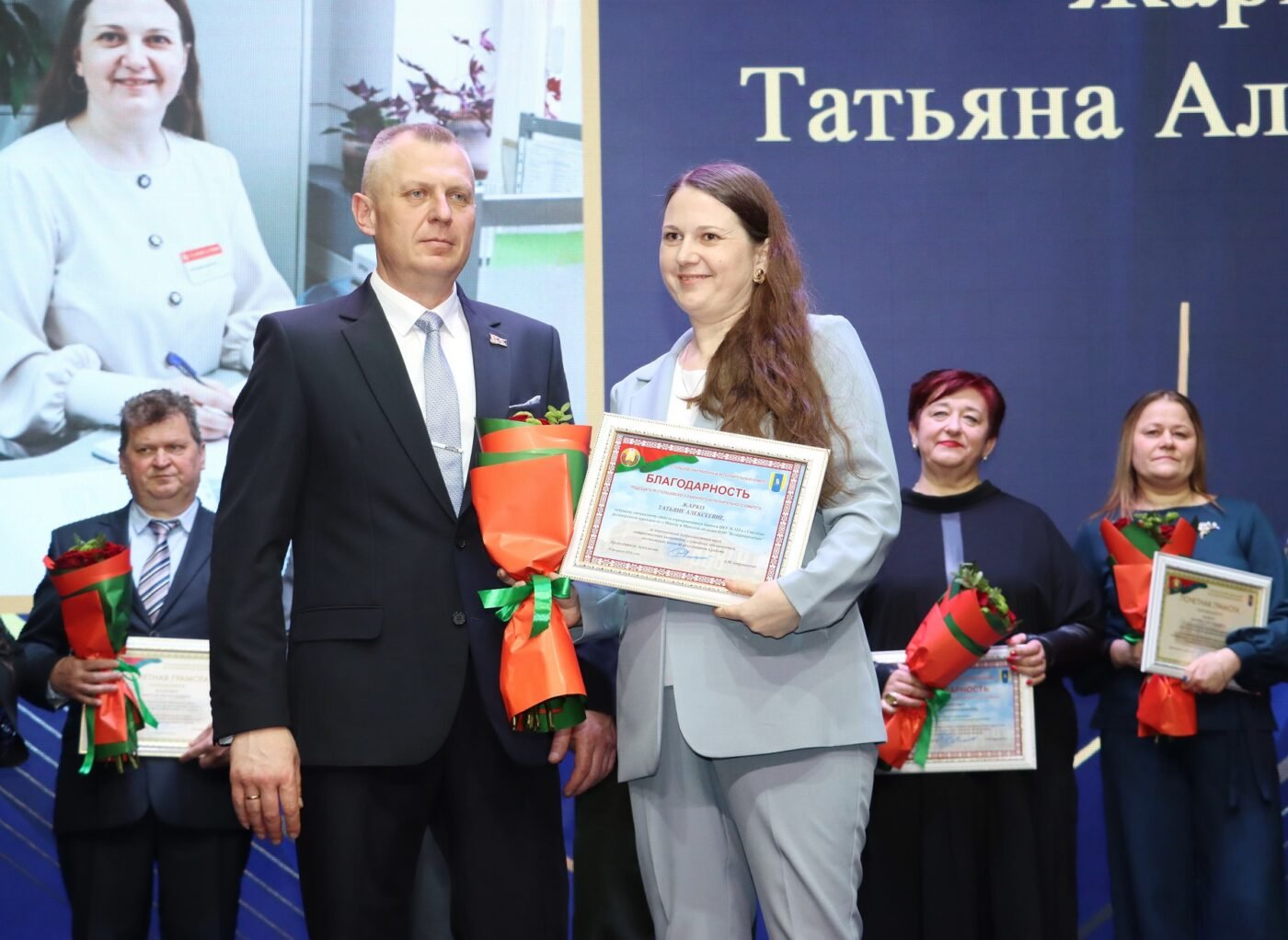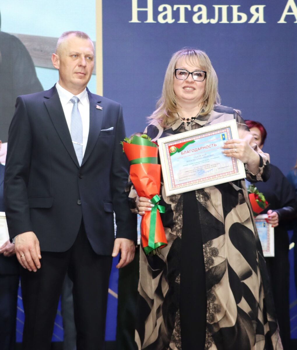 Председатель Столбцовского райисполкома Андрей Атрушкевич объявил благодарность заместителю председателя Столбцовского райисполкома Ирине Пашкевич и провел награждение работников организаций и предприятий за многолетний добросовестный труд, большой личный вклад в социально-экономическое развитие Столбцовского района.