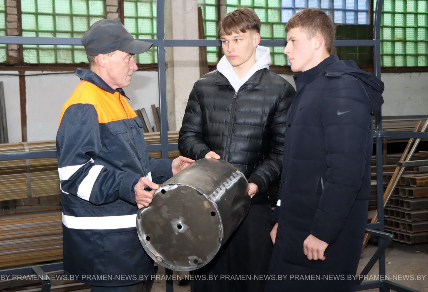 Затем побывали в мастерской, где производят автобусные павильоны и урны. Даже сами поучаствовали в сборке конструкций и поняли, насколько здесь важны слаженность команды и точность в работе.