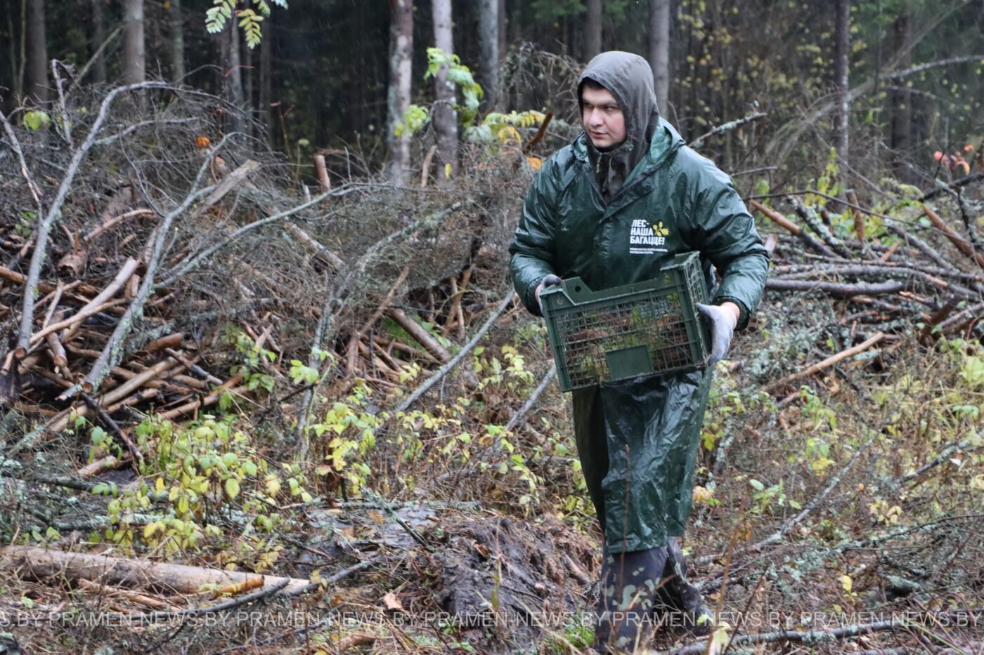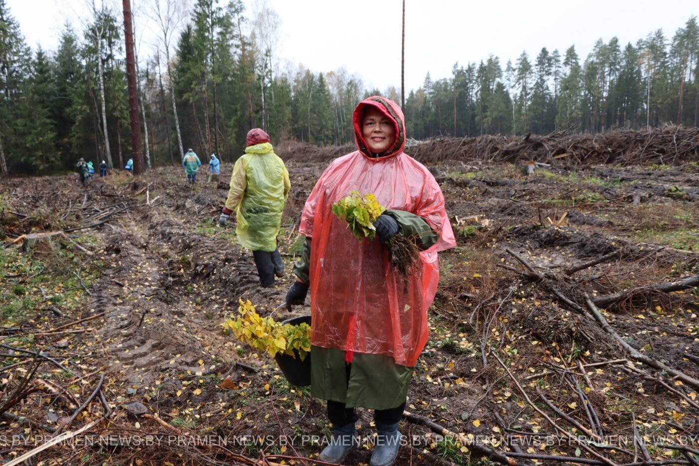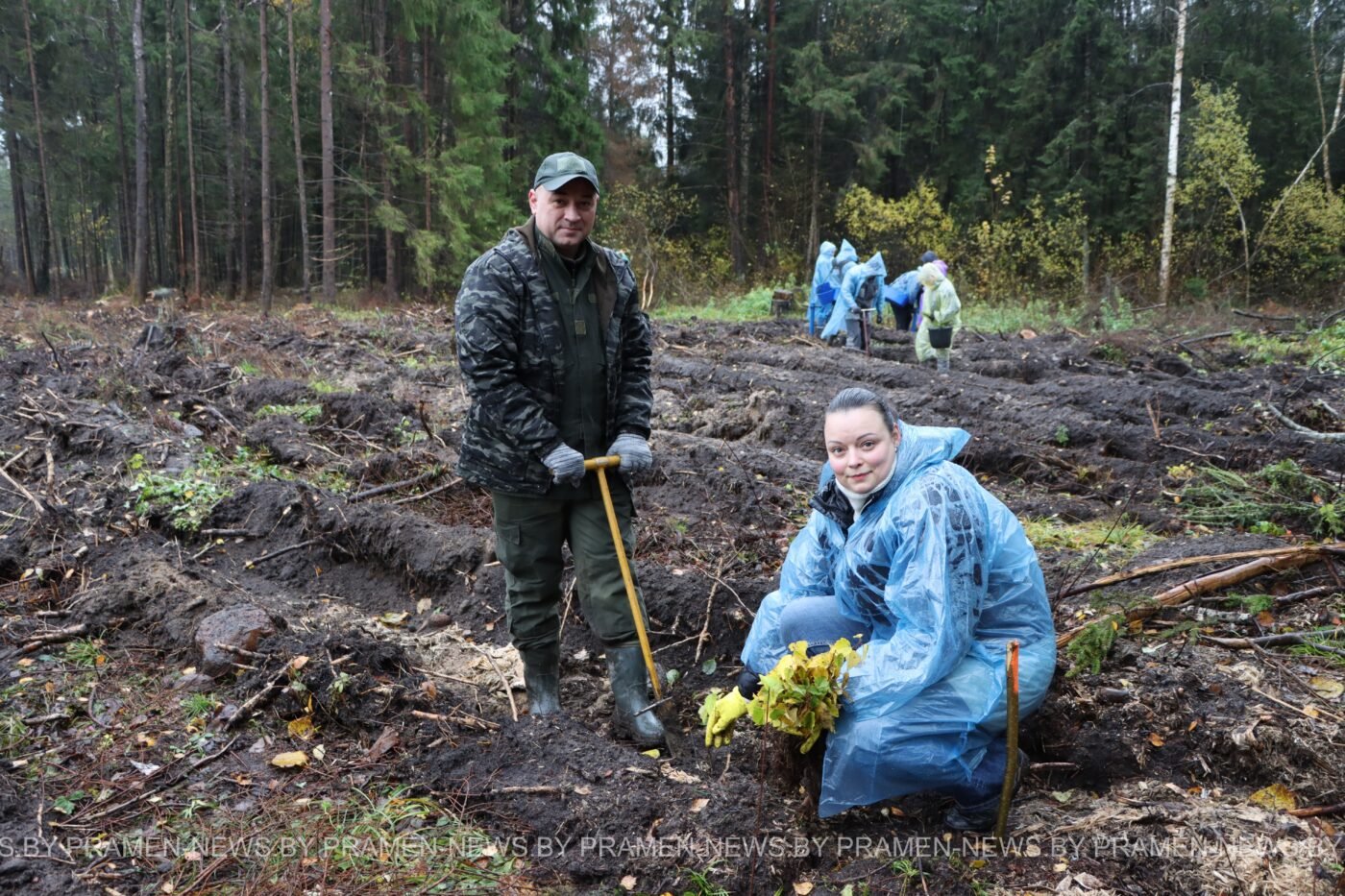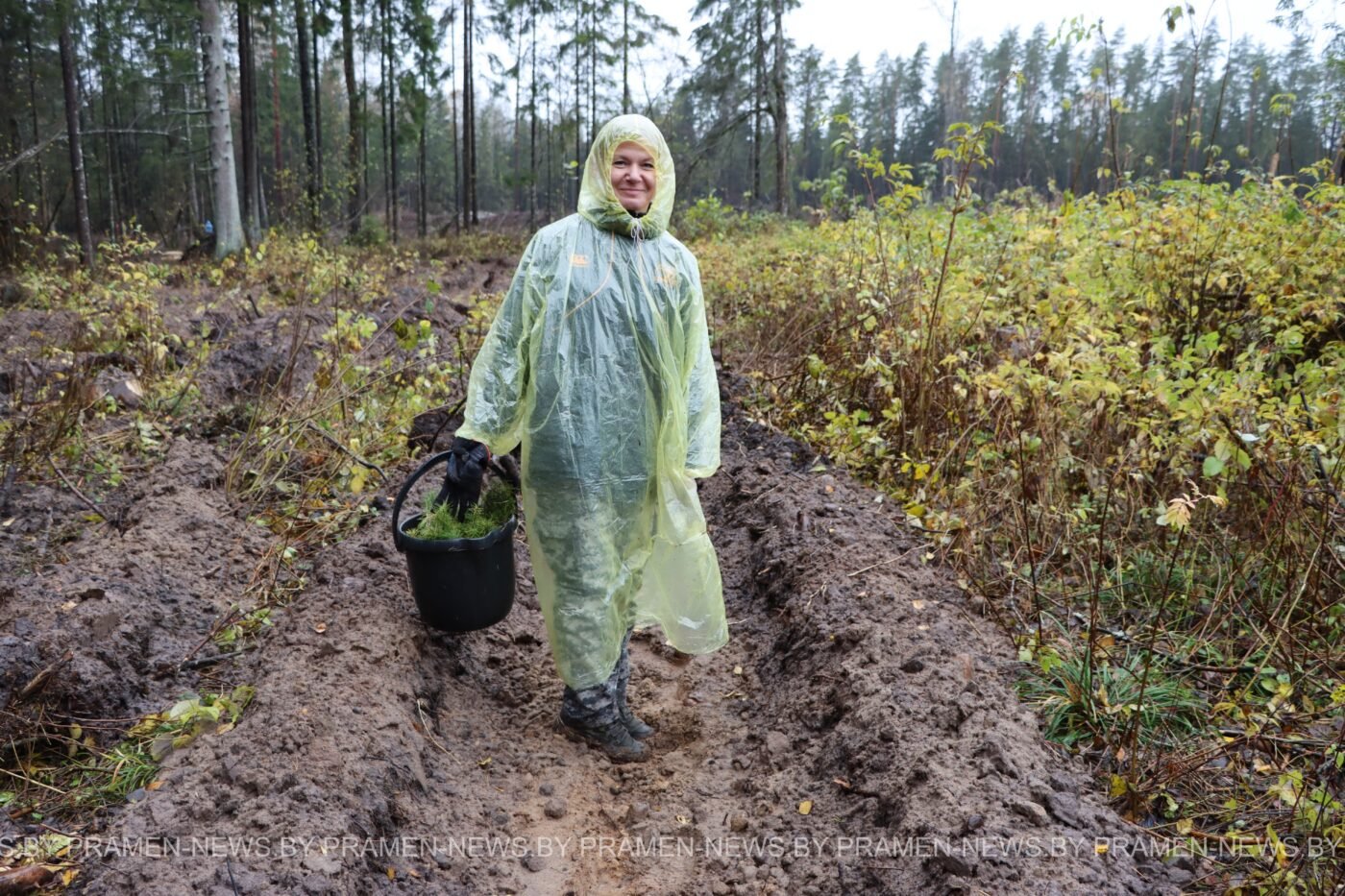 Несмотря на осеннюю погоду, настроение было позитивным, а дождик только поспособствует быстрому приживанию новых лесных культур.