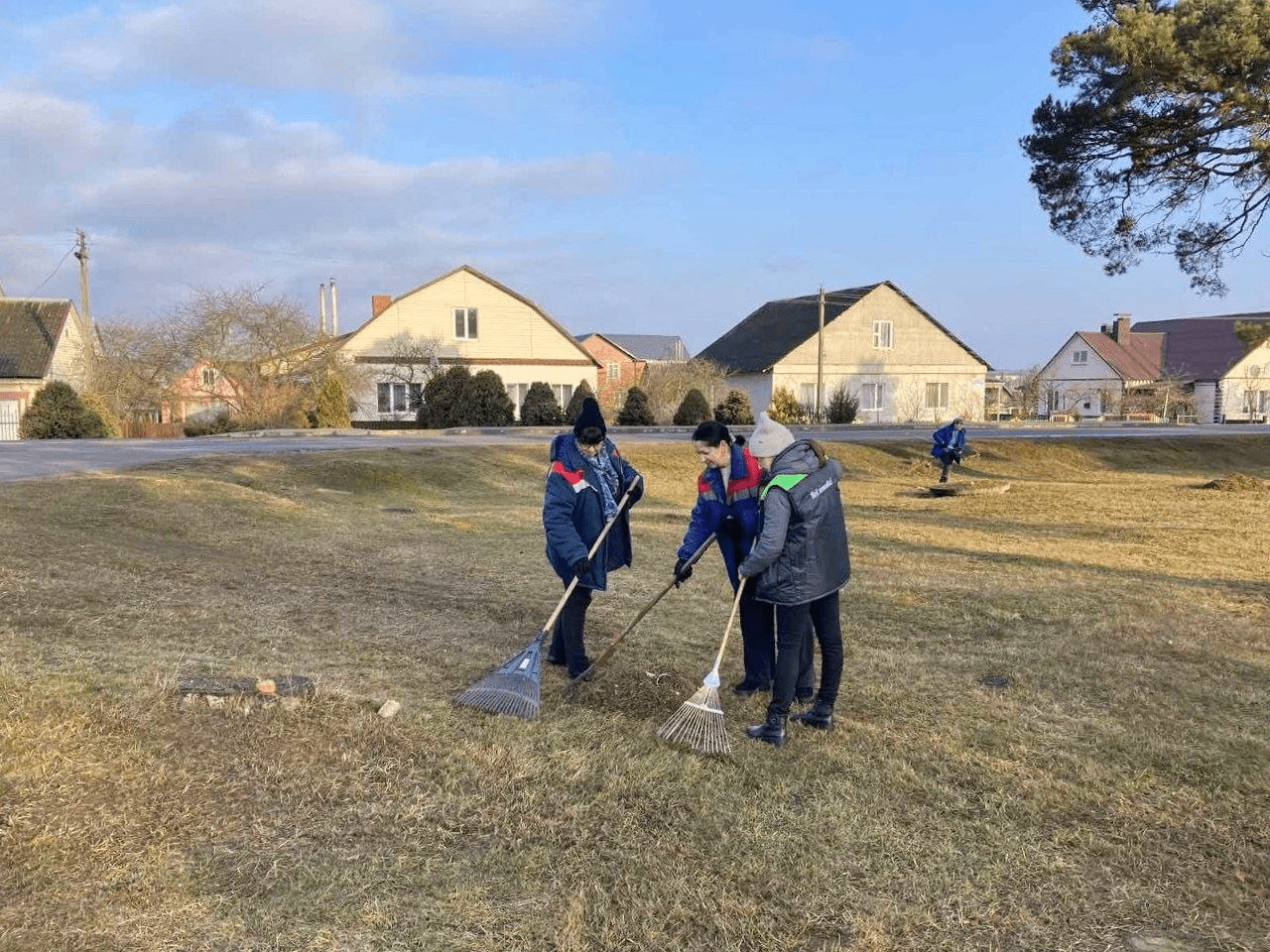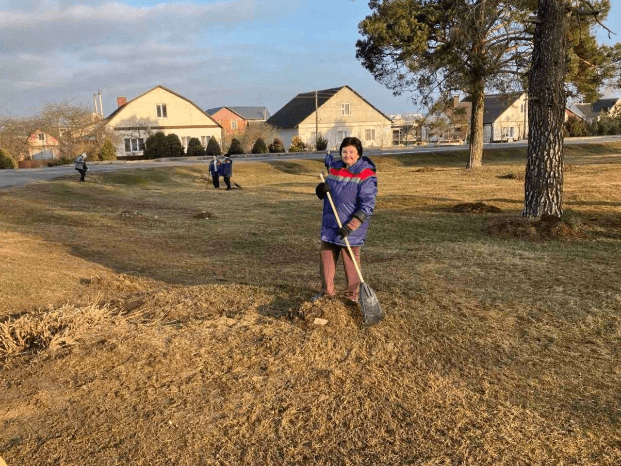 В первый весенний субботник работники мясоконсервного комбината во главе с директором Ромуальдой Бурдукевич наводят порядок на территории предприятия.
