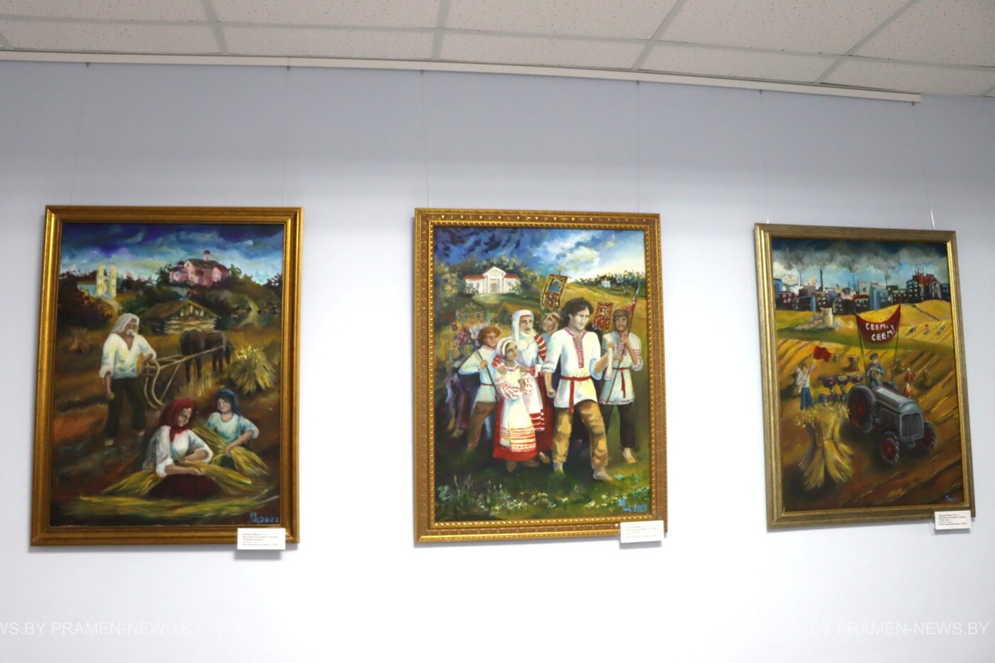 «Вытокі» – так называется выставка, которую в Столбцовской детской школе искусств презентовала руководитель народной студии живописи «Раніца» Милана Щетько.
