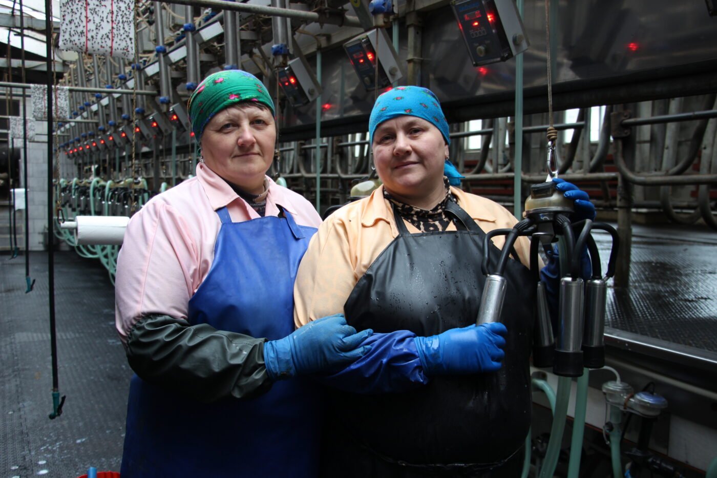 Один из слагаемых успешной работы — это в первую очередь старательный коллектив животноводов. Многие работают не первый год, порученную работу знают и выполняют честно — один из главных факторов в производстве молока. Двадцать три года трудится техником-осеменатором Лариса Галимулина – признанный в районе специалист. Неоднократный победитель районного конкурса среди представителей этой важнейшей в животноводстве профессии. Лариса Вацлавовна одна осеменяет на фермах всех коров и телочек, а это 1600 голов. И всегда имеет высокий выход телят. Операторы машинного доения Оксана Мелешкевич и Елена Шут работают в животноводческой отрасли двадцать шесть и двадцать четыре года соответственно