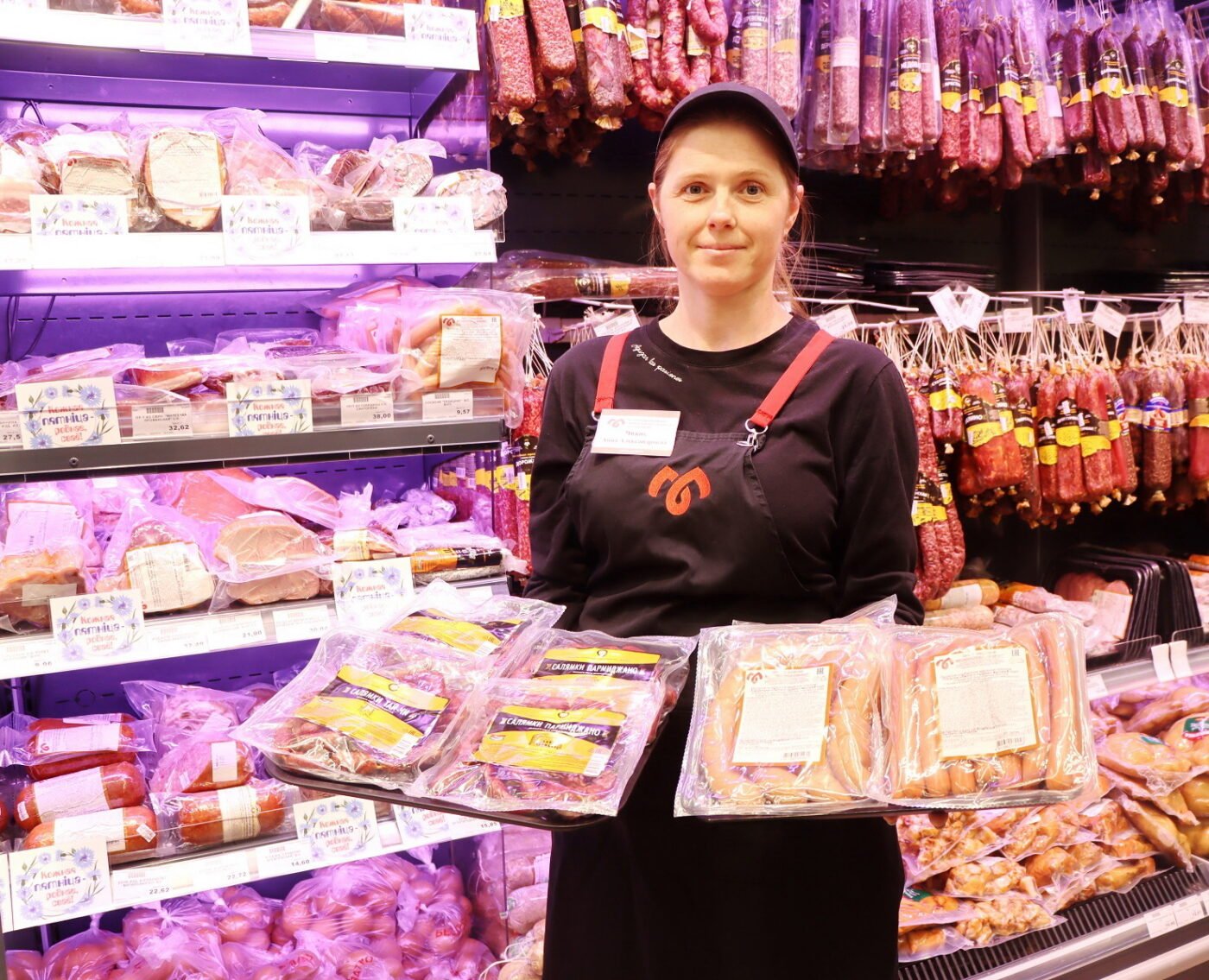 Продавец магазина «Мясныя прысмакі» Анна Чижик презентует новинки.