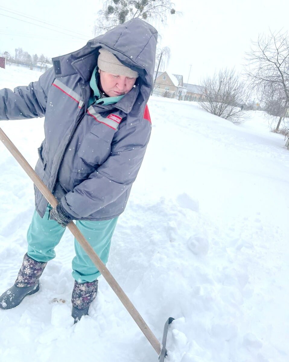 Сердца, согревающие зимой: социальные работники Столбцовского ТЦСОН заботятся не только о тепле в домах, но и о чистых дорожках своих подопечных