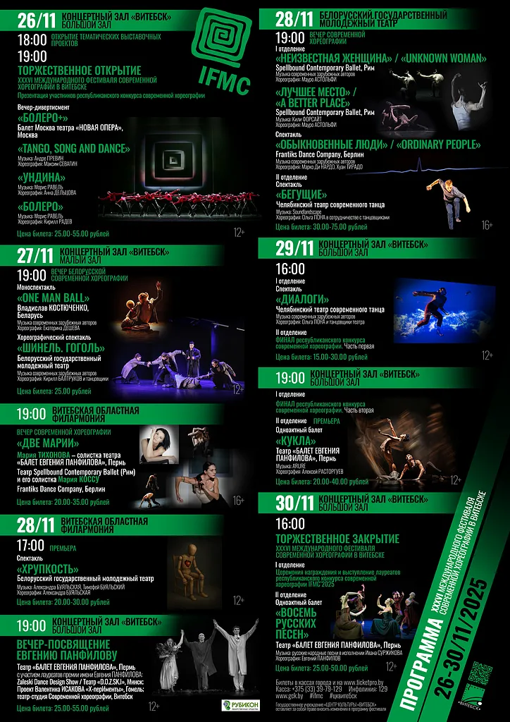 С 26 по 30 ноября в Витебске состоится XXXVI Международный фестиваль современной хореографии (IFMC 2025). Традиционный форум современного танца вновь станет одним из основных событий мероприятия, пишут «Витбичи«.