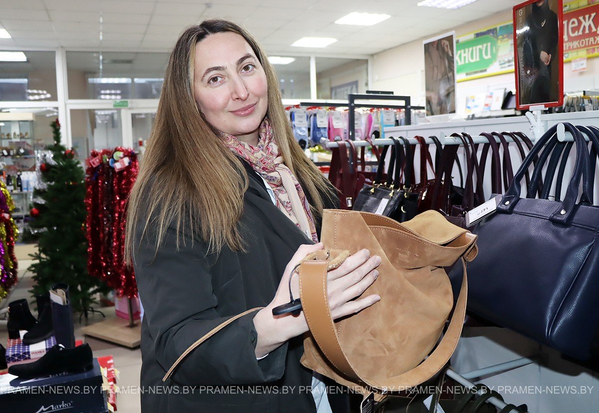 Столбчанка Анна Кривонос узнала об открытии новой секции, пришла ознакомиться с ассортиментом и сразу же приглядела себе сумочку — мягкую, из натуральной кожи.
